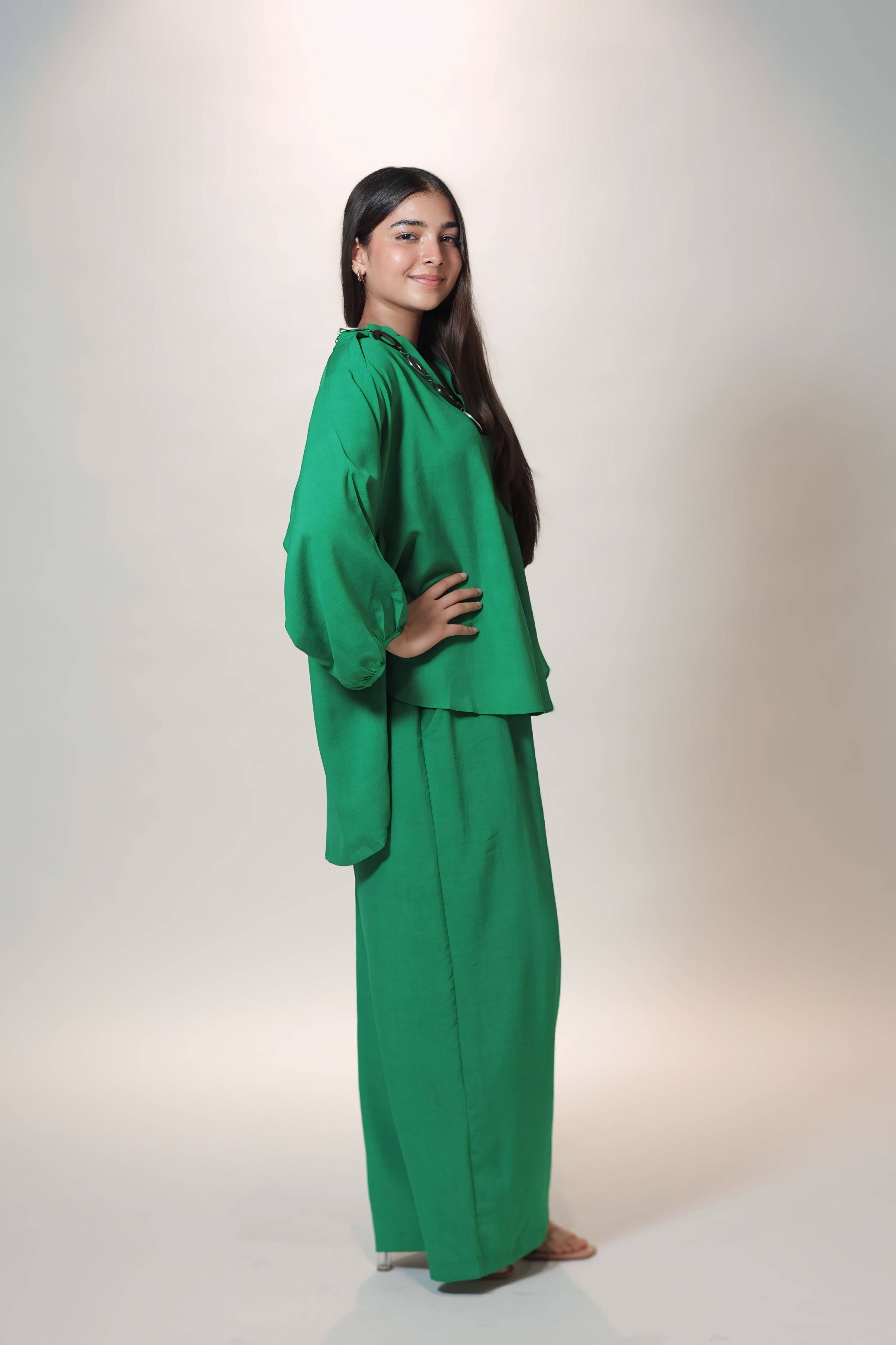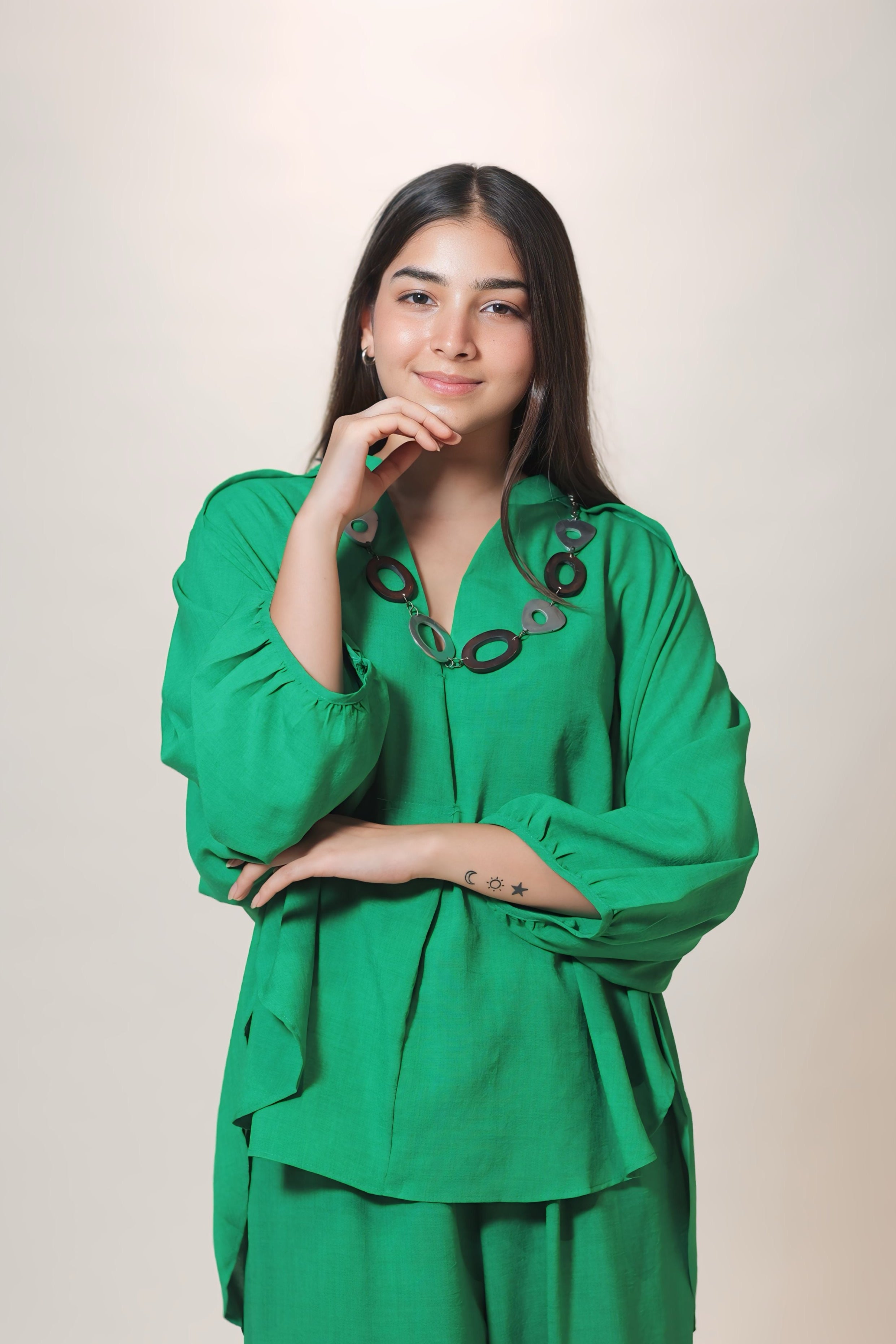 Make a bold yet elegant statement with the Emerald Grace Top, crafted from a soft cotton blend that provides comfort with a luxurious feel. The vibrant green hue is both refreshing and sophisticated, perfect for brightening up your wardrobe. Designed with a relaxed fit and subtle details, this top flows effortlessly, offering versatility for both casual and semi-formal settings. Pair the Emerald Grace Top with neutral tones or bold accessories to create a look that's uniquely you.