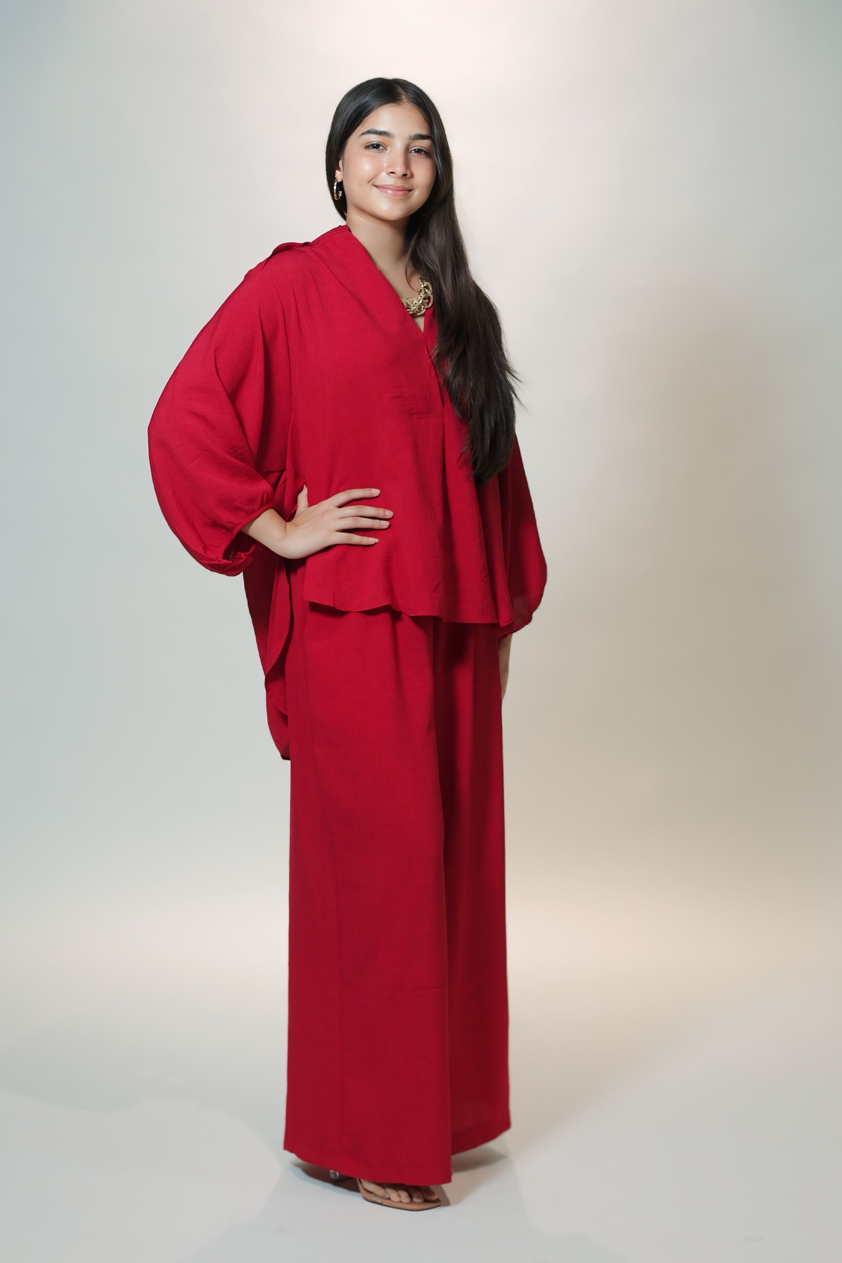 Bring a touch of bold sophistication to your wardrobe with the Ruby Flow Top, crafted from a soft, breathable cotton blend for all-day comfort. The striking ruby red hue exudes confidence, while the relaxed, flowing design offers effortless style and grace. Whether you're dressing up for a special occasion or keeping it casual, this top provides a versatile option that pairs beautifully with any look. Elevate your ensemble with the timeless charm of the Ruby Flow Top.