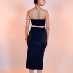 Going on a beach trip? We’ve got the perfect set for your getaway. This effortlessly sexy two-piece includes a twist-knot bandeau top and a matching high-slit ruched skirt, both crafted in soft, stretchable fabric that hugs the body just right. Whether you’re lounging poolside or strolling along the shore, this look brings the heat.