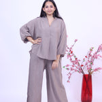 Crafted with a cotton blend, the Beige Co-Ord Set offers both comfort and style. The exclusive design makes it a unique addition to any wardrobe. Elevate your fashion game with this must-have set.