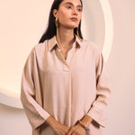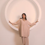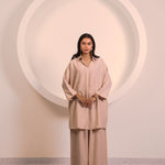 Soft Beige Flow Longline Collar Co-ord Set