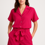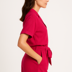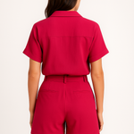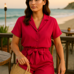 Bold, bright, and effortlessly cool—the Berry Pop Co-ord adds a vibrant twist to warm-weather dressing. The cotton linen fabric keeps it breathable, while the tailored shirt and half-elasticated shorts strike the perfect balance between structure and ease. Pair with slides or sneakers for a pop of playful style.
