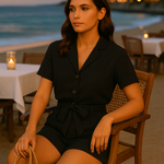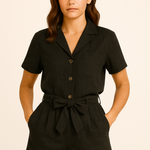 Sleek, minimal, and endlessly wearable—the Midnight Mesa Co-ord is your wardrobe staple for effortless styling. Crafted from soft cotton linen, the set includes a clean-lined shirt and half-elasticated high-rise shorts for a tailored yet comfortable fit. Style it up or down depending on your mood.