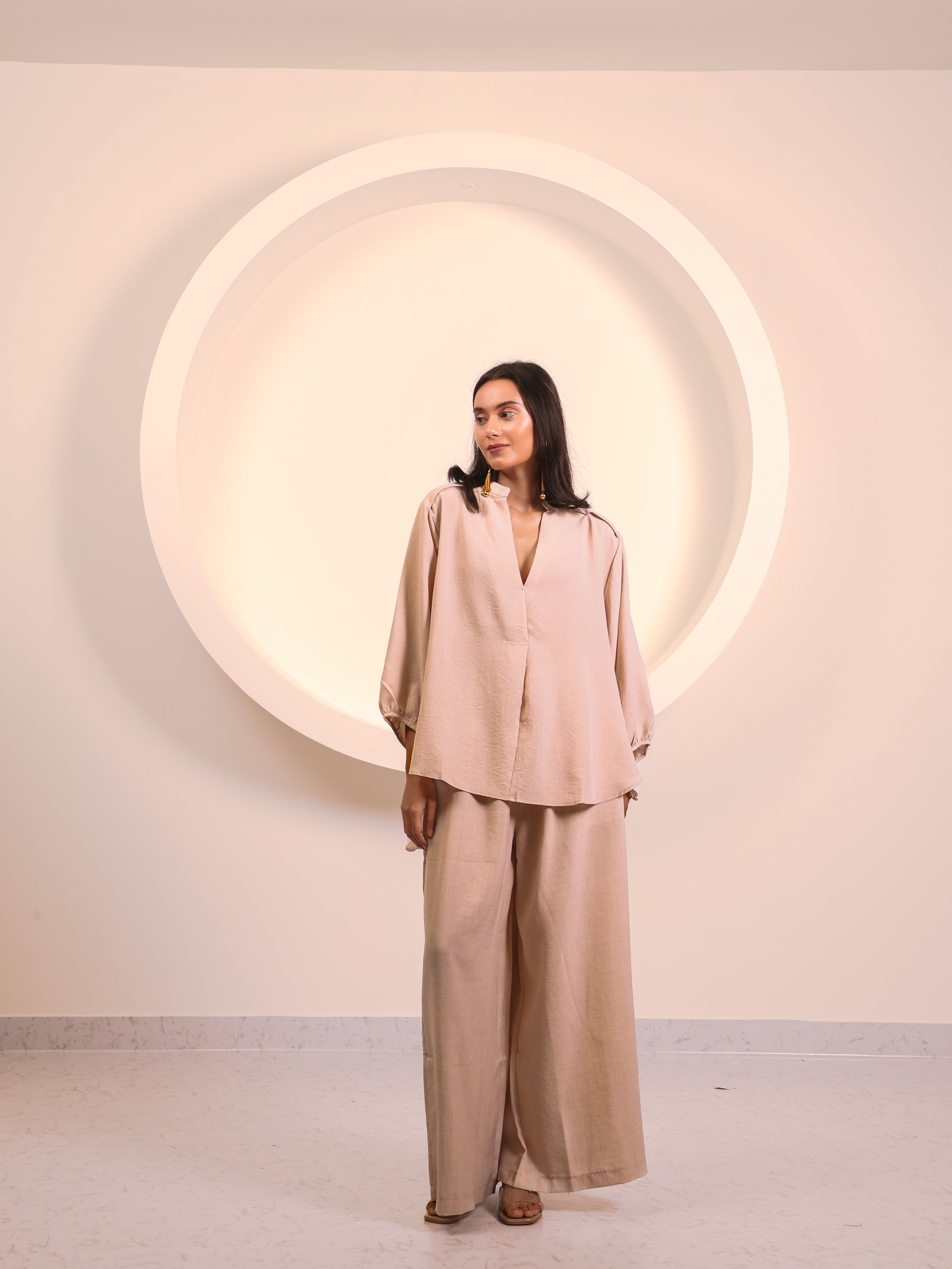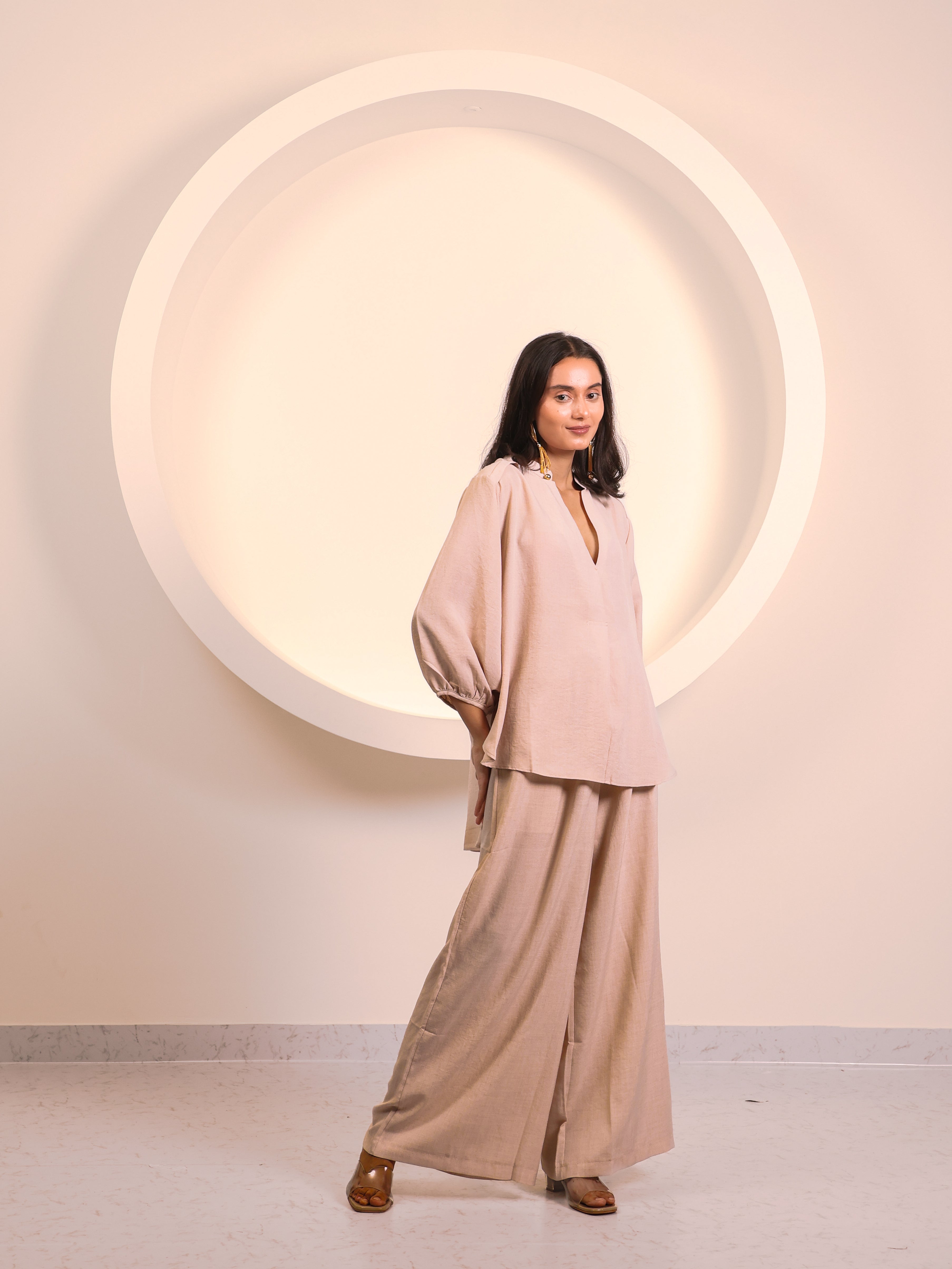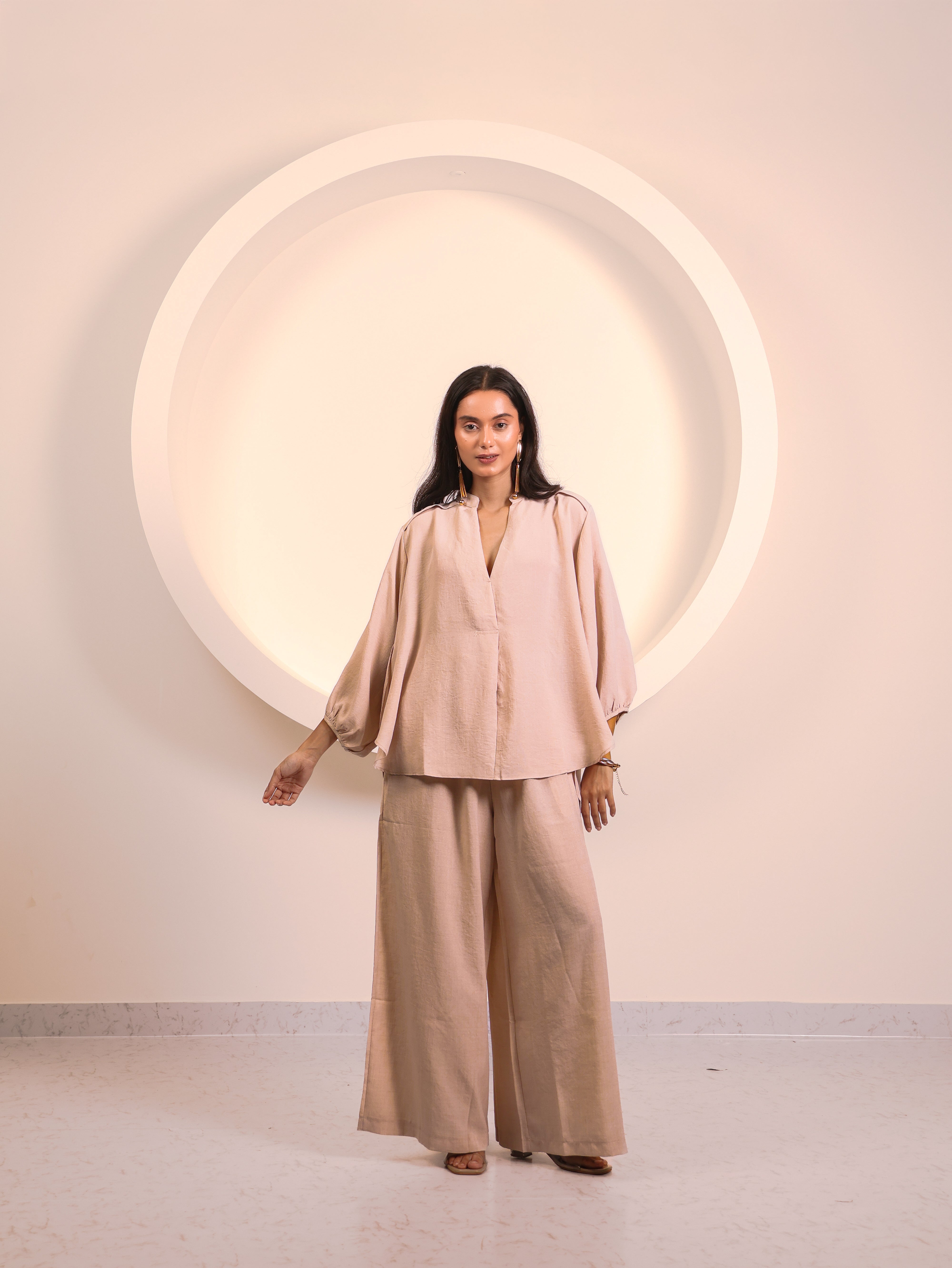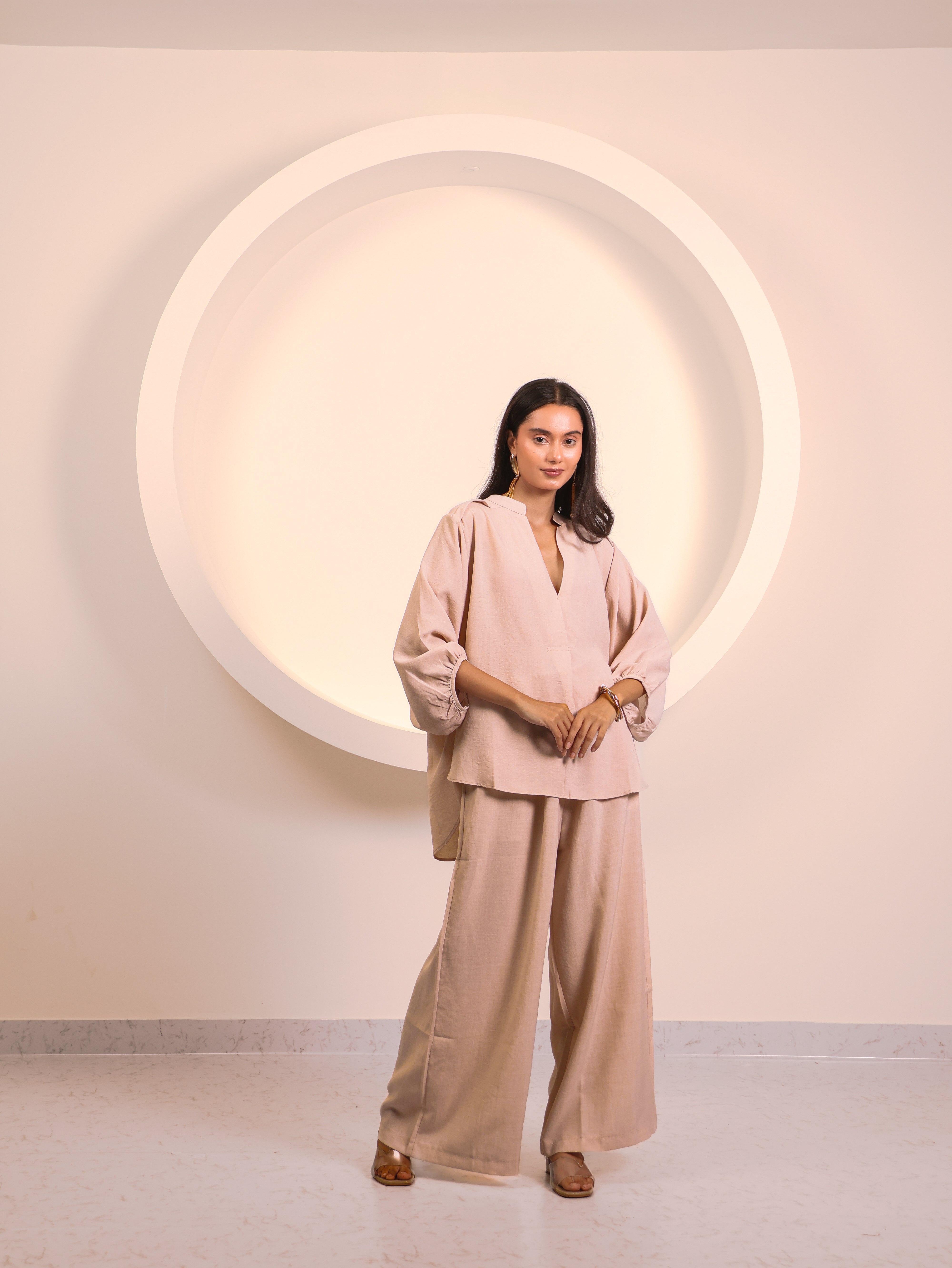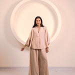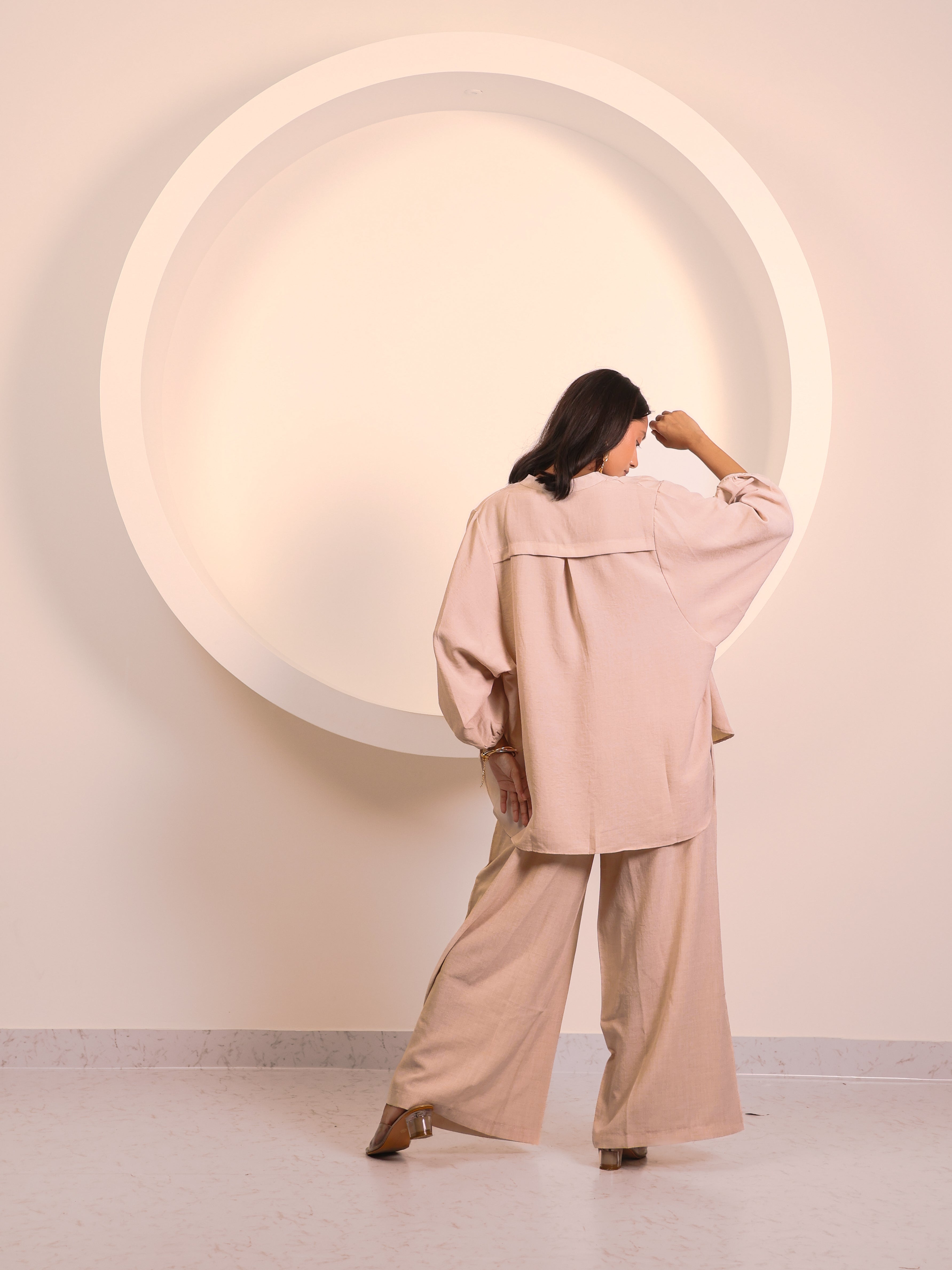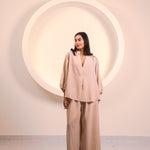 The Soft Beige Co-ord Set, made in cotton blend fabric, offers the perfect balance of comfort and sophistication. Its subtle yet refined design makes it a versatile piece, seamlessly fitting into any wardrobe. A timeless essential to elevate your everyday style.