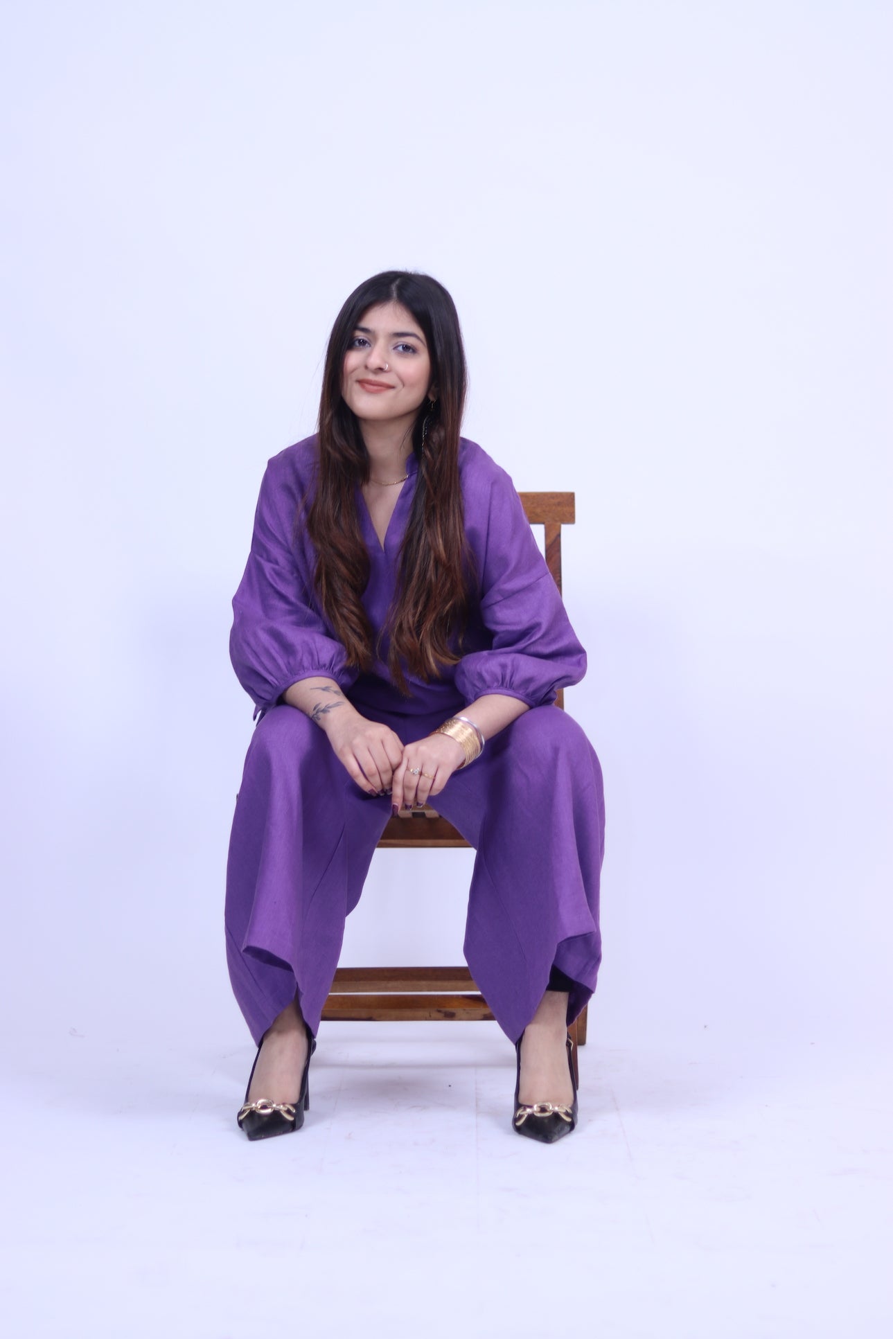 Unleash your confidence with our Linen Purple Chic Co-ord Set! This stylish set is designed to elevate your elegance and make you feel your best. Look and feel confident in this elegant co-ord, perfect for any occasion.