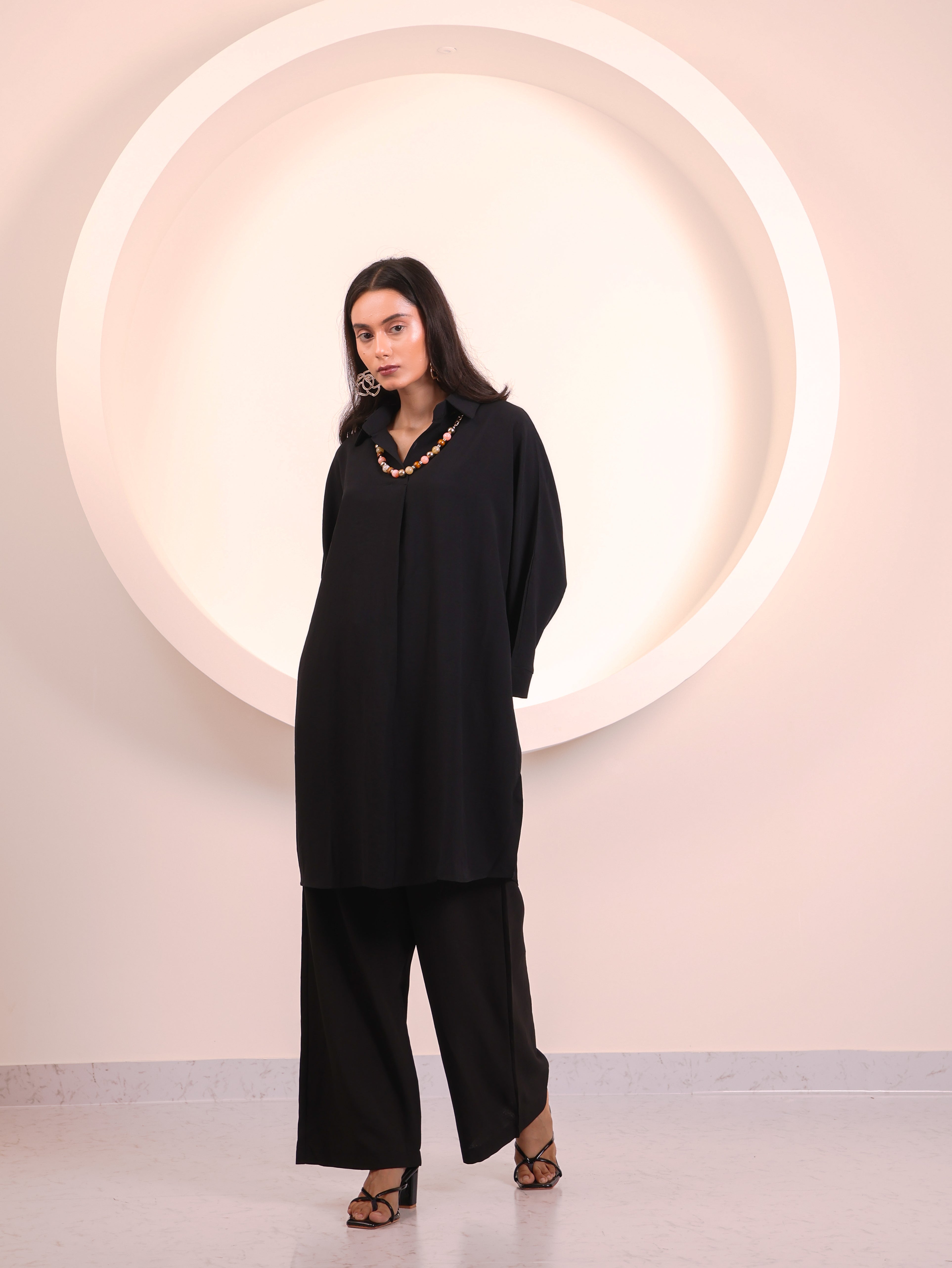 Chic, versatile, and endlessly comfortable—this tunic is crafted to flatter across occasions. The relaxed-fit silhouette features a smart collared neckline and 3/4th sleeves, lending it a breezy yet refined appeal. Designed in lightweight, breathable fabric, it drapes effortlessly and transitions with ease from day to evening. Available in a range of colors—from subtle neutrals to bold statement tones—each shade tells its own style story. Pair it with trousers, denim, or leggings to create looks that go from casual chic to polished elegance.