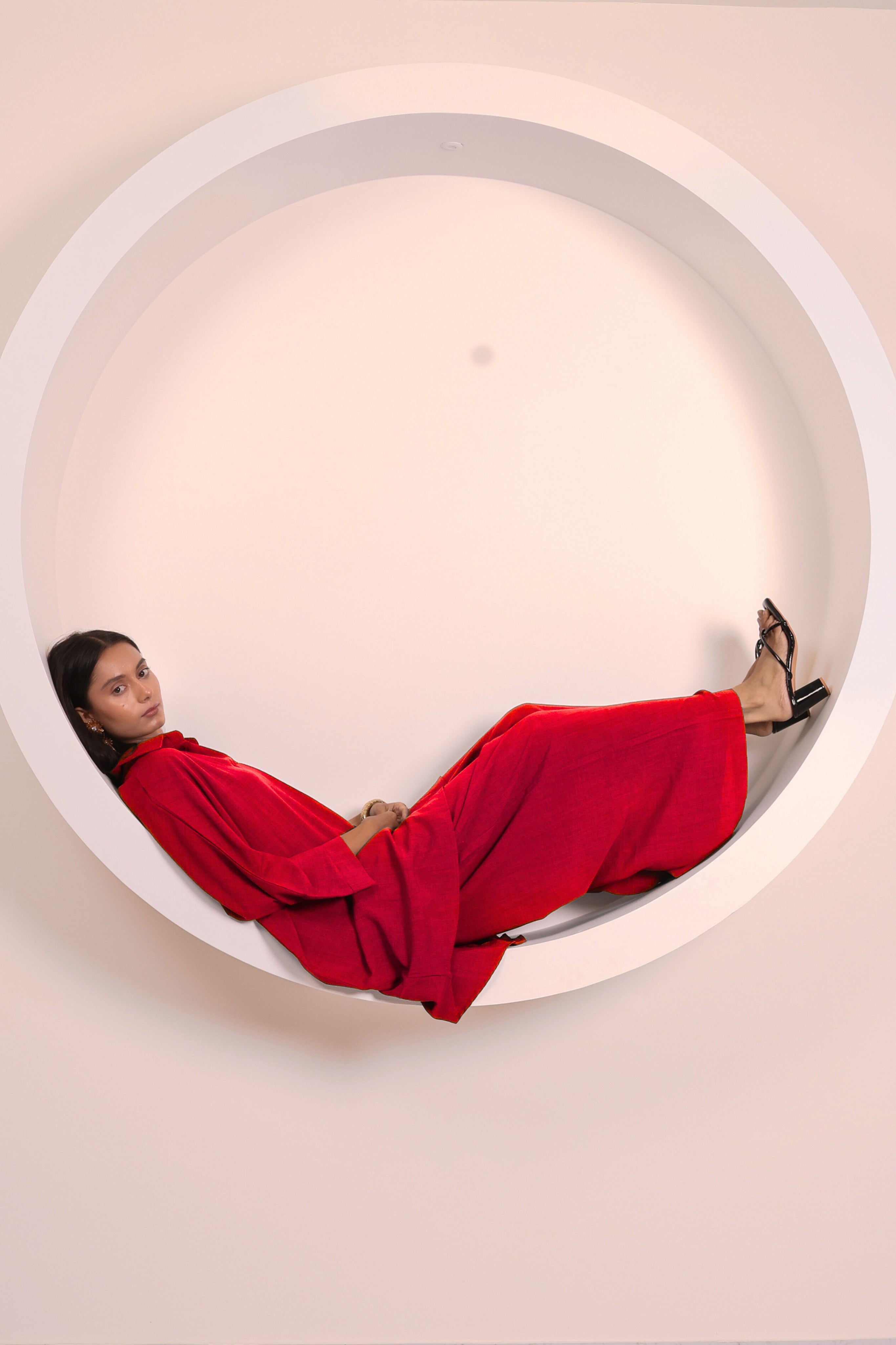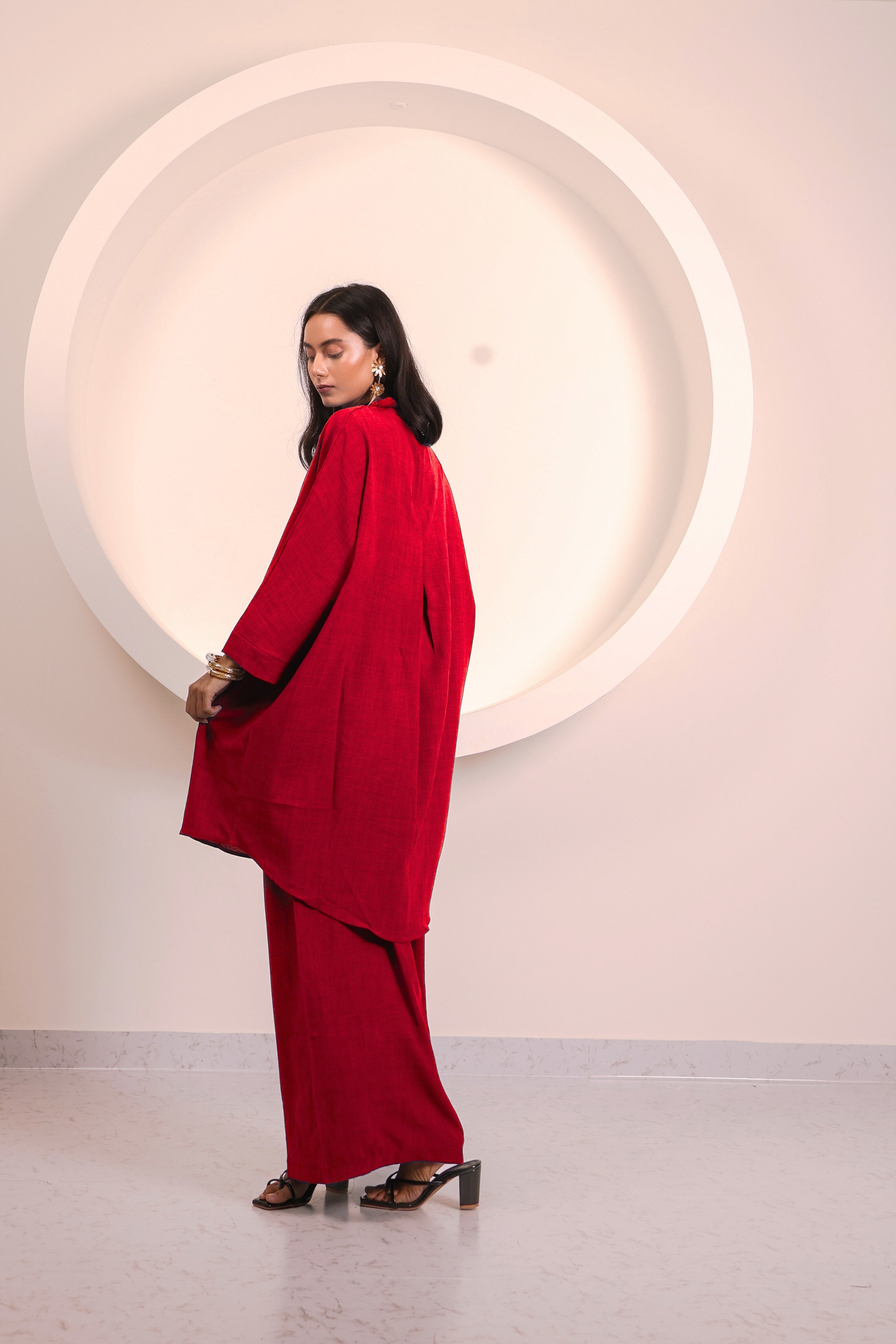 Red collar long tunic top (INCLUDES TUNIC ONLY)