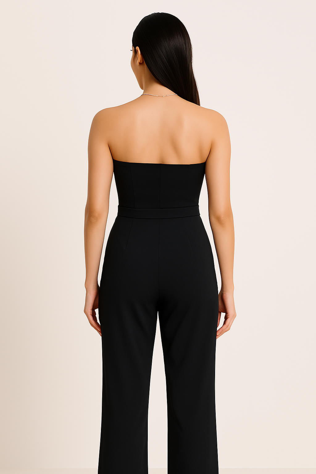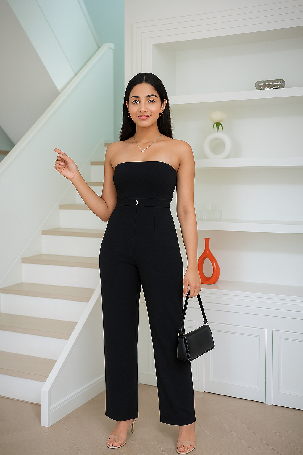 The Luxe Tube Jumpsuit is the perfect mix of elegance and comfort. Crafted from premium viscose lycra, this strapless jumpsuit features built-in padded cups for a secure and flattering fit. The golden hook lock detail at the waist adds a touch of sophistication, enhancing your silhouette. The fitted bodice hugs your curves beautifully, while the wide-leg cut creates an effortlessly chic look. Whether you're heading to a brunch, a party, or a night out, this jumpsuit is your go-to choice for modern sophistication. Available in Lime Green, Black, and Mocha.