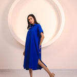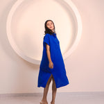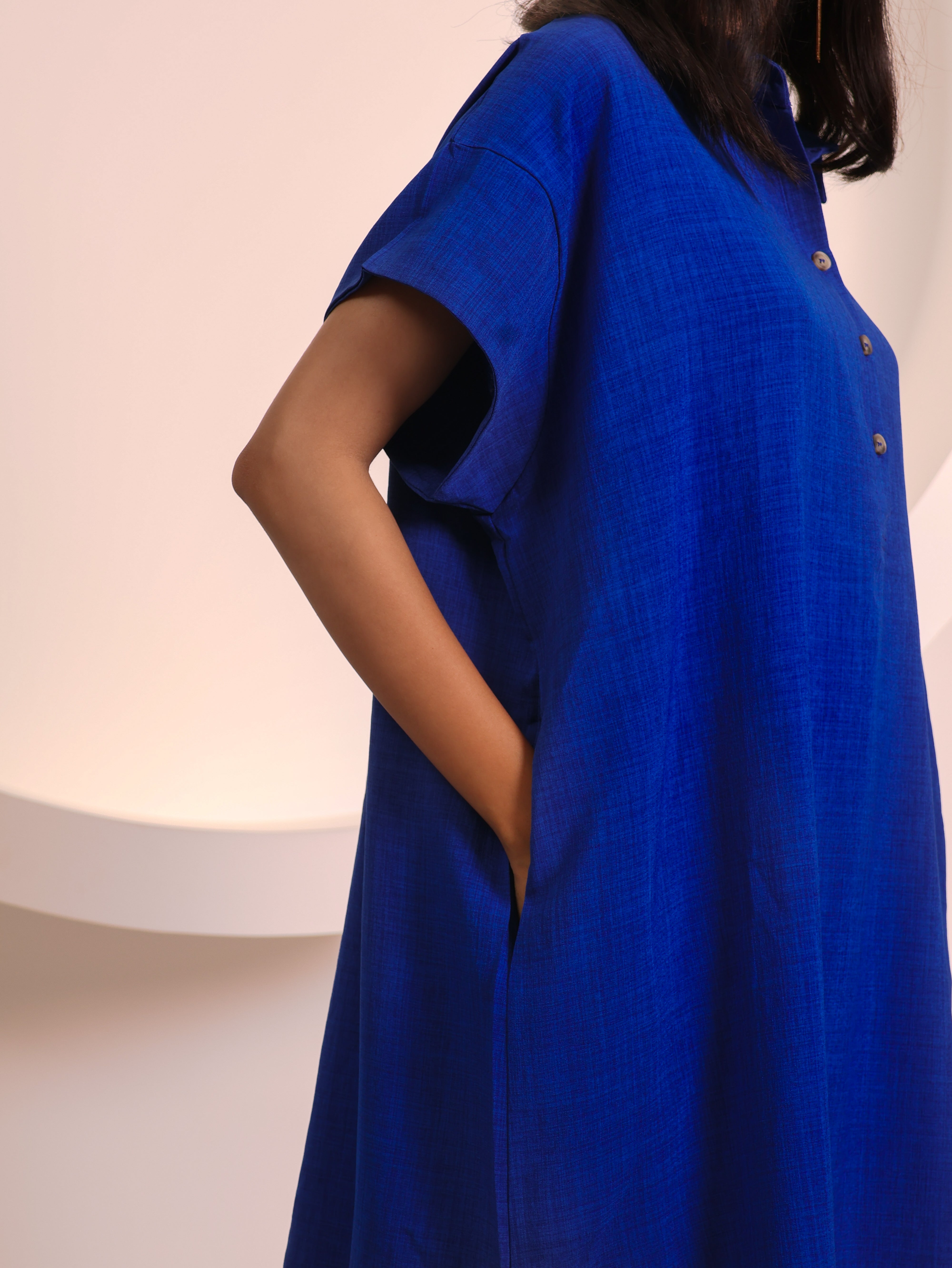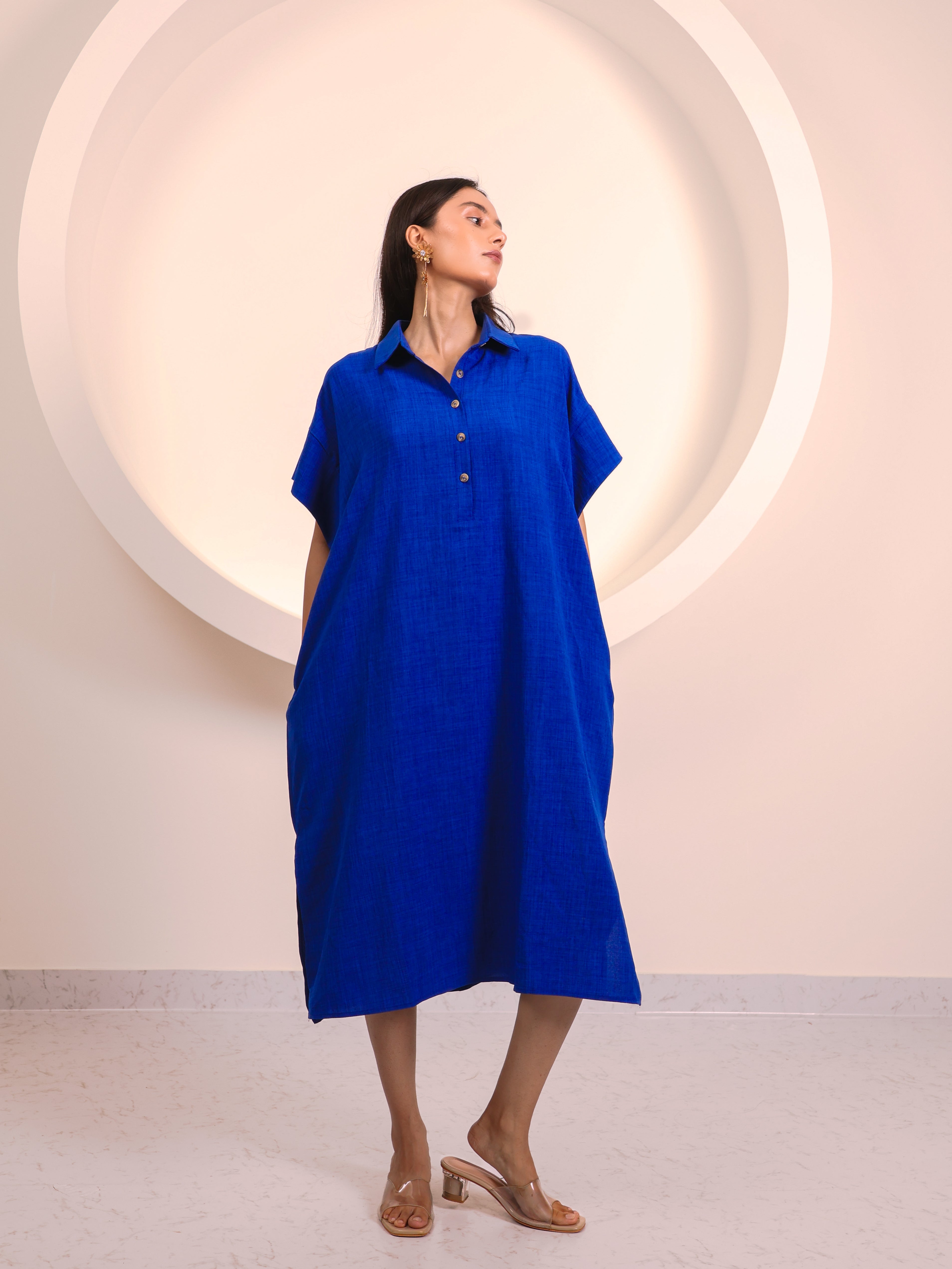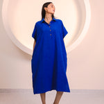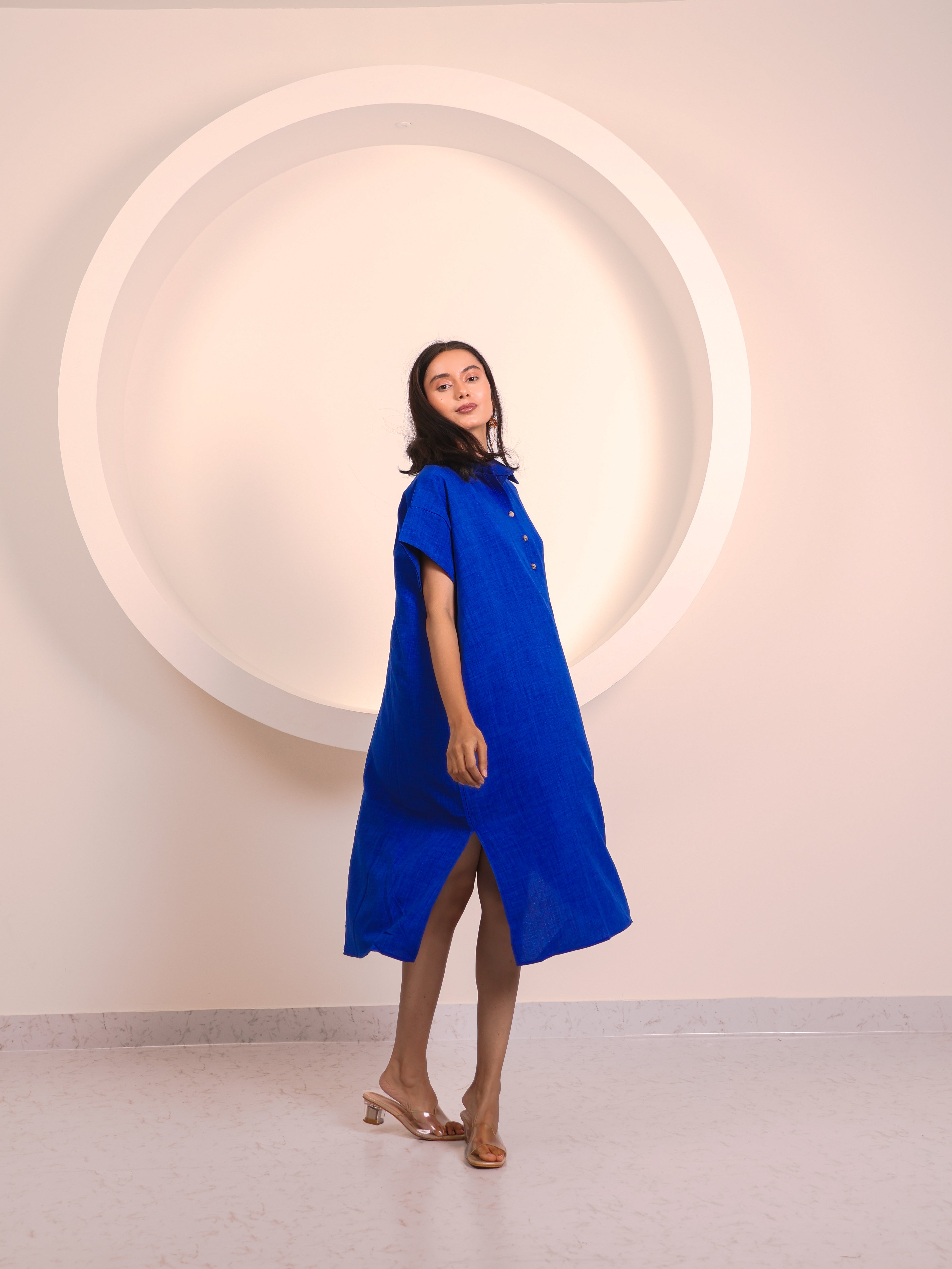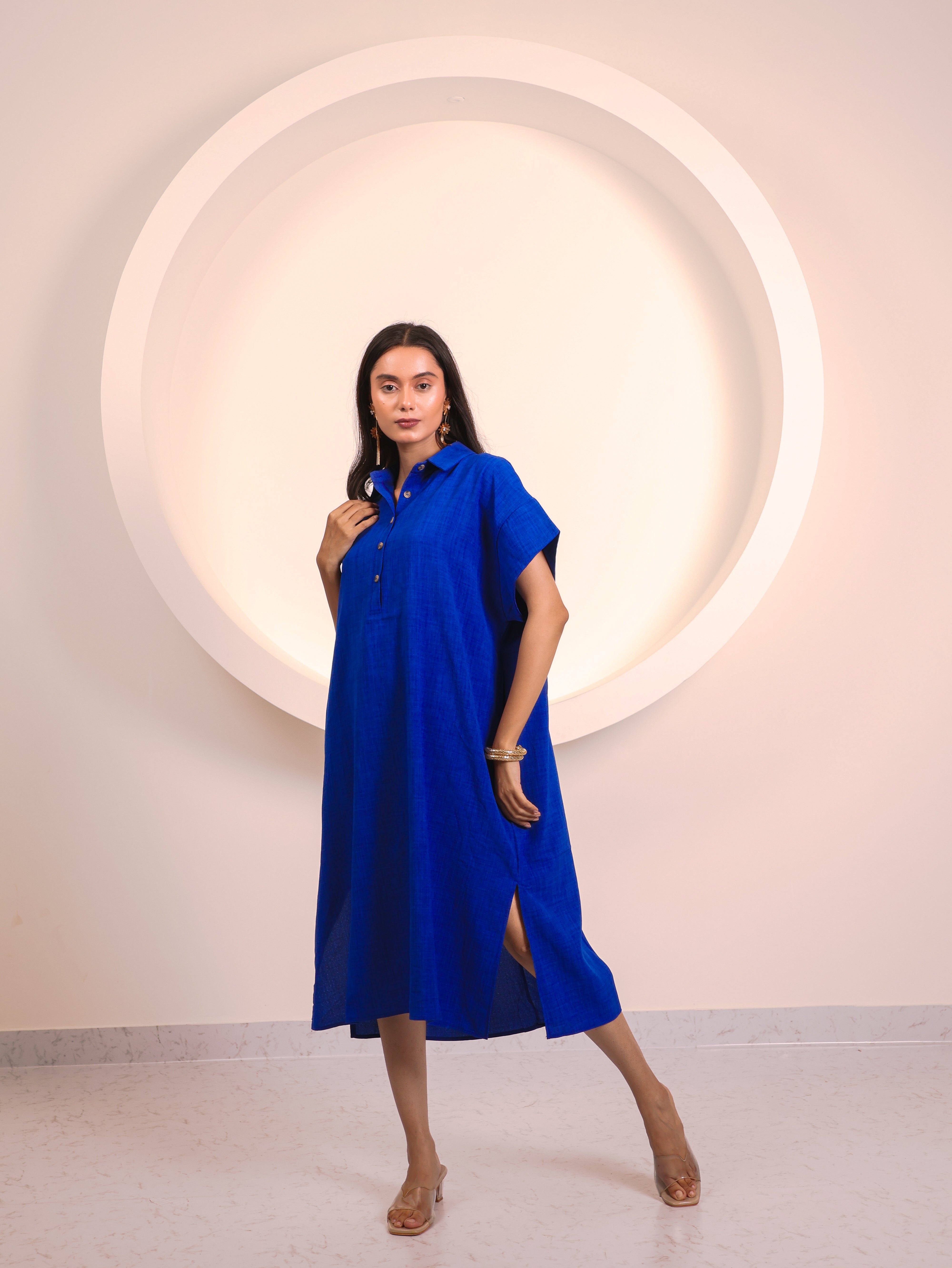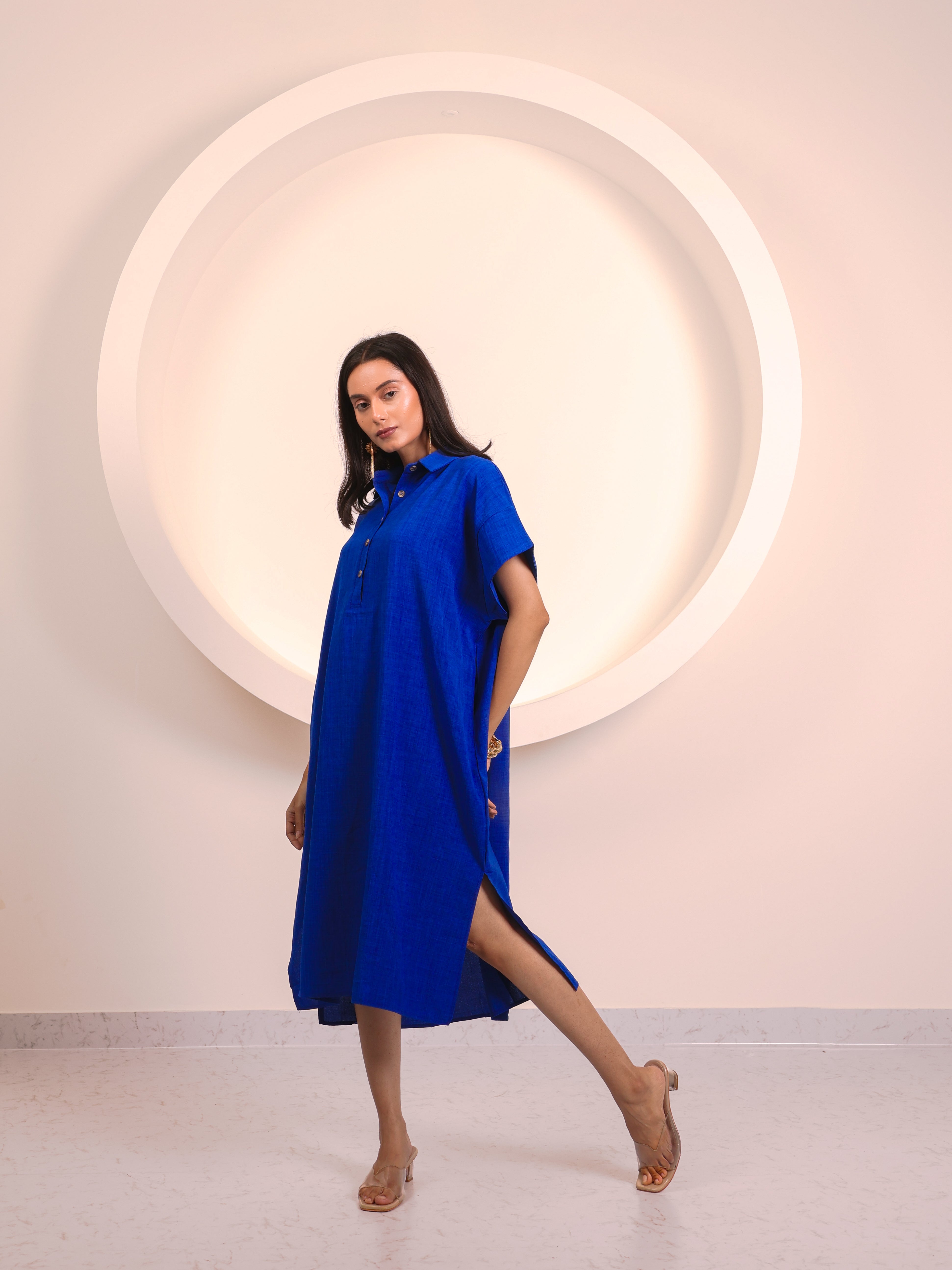 A modern take on effortless dressing, this tunic blends comfort with understated elegance. Featuring a button-down collar neckline and a relaxed, longline silhouette, it drapes beautifully while offering all-day ease. The short sleeves and side slits add a breezy touch, making it versatile enough to wear solo as a tunic dress or layered over trousers for a polished look.