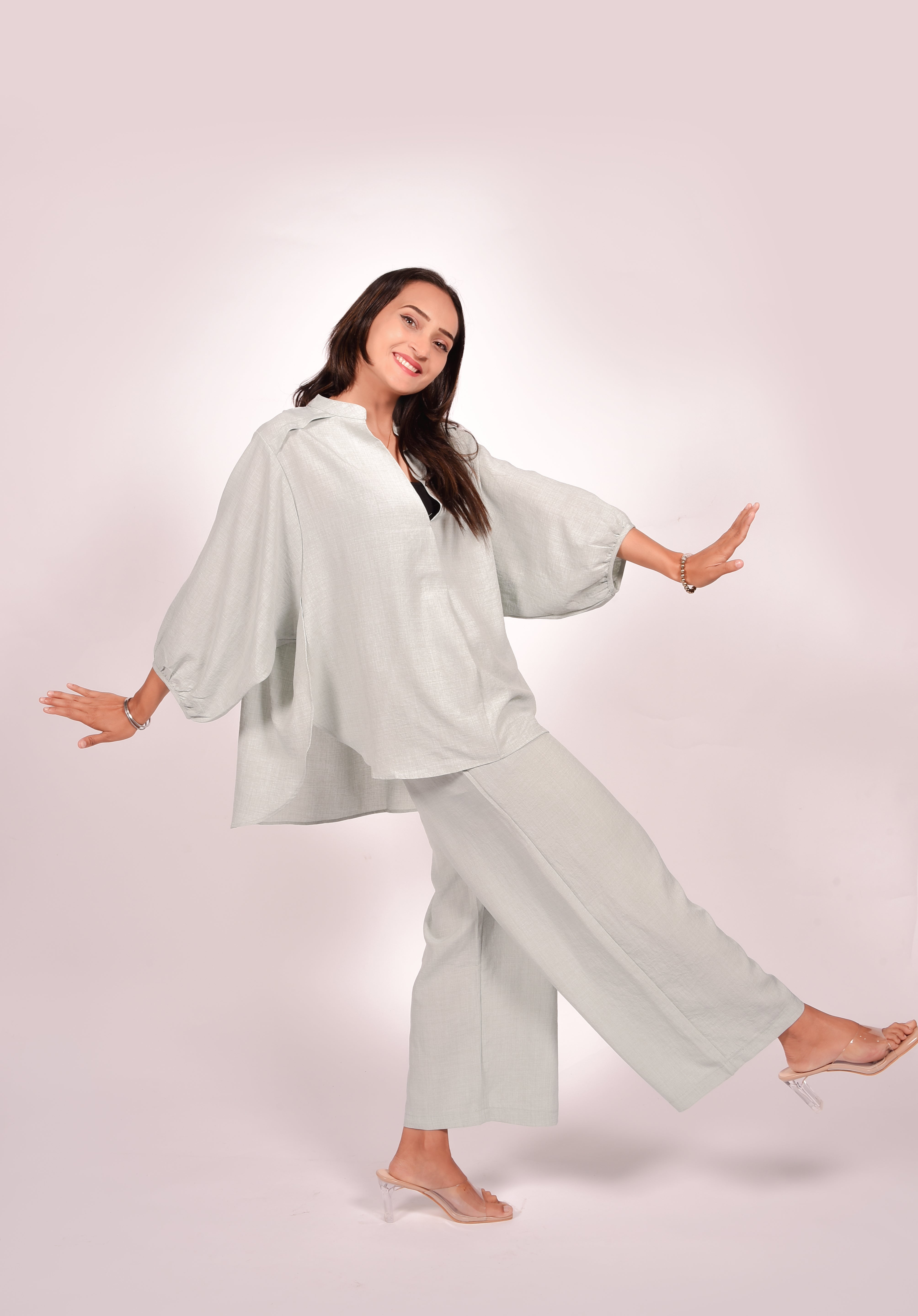 Easy elegance meets everyday wear in the Sea Green Co-ord Set. The flowy silhouette, soft balloon sleeves, and relaxed fit give it a modern yet laid-back charm. Made from a breathable cotton blend, it’s perfect for everything from lounging at home to stepping out in style. Add statement accessories or keep it minimal — it effortlessly adapts to your vibe.