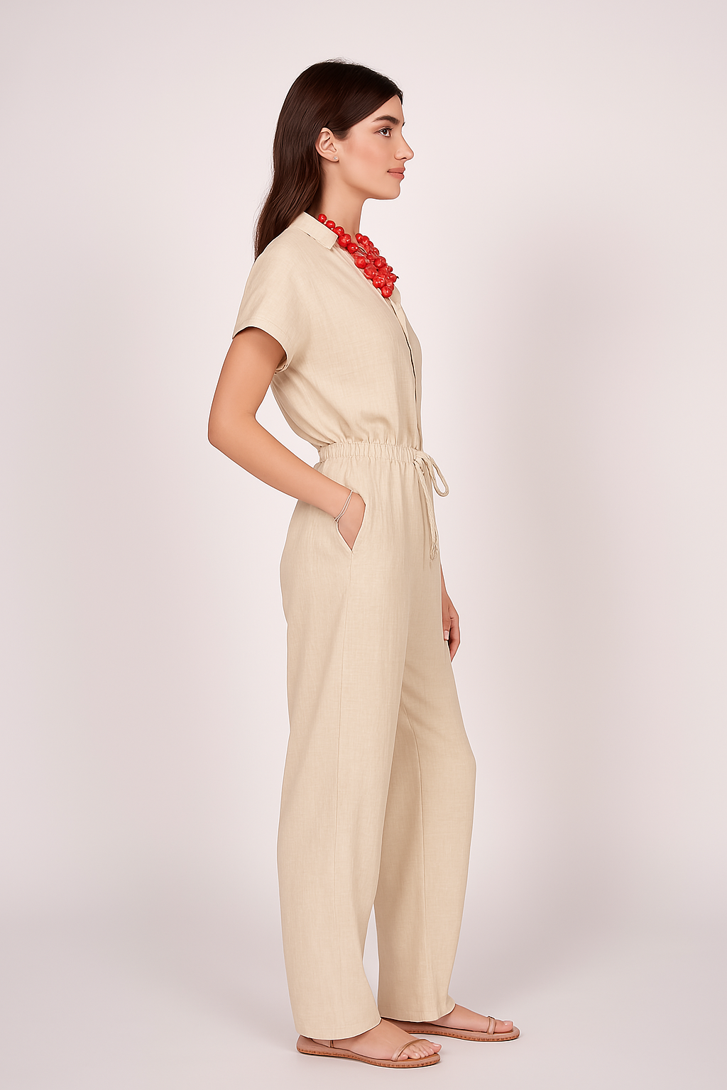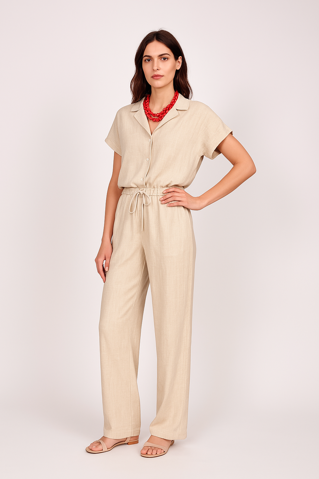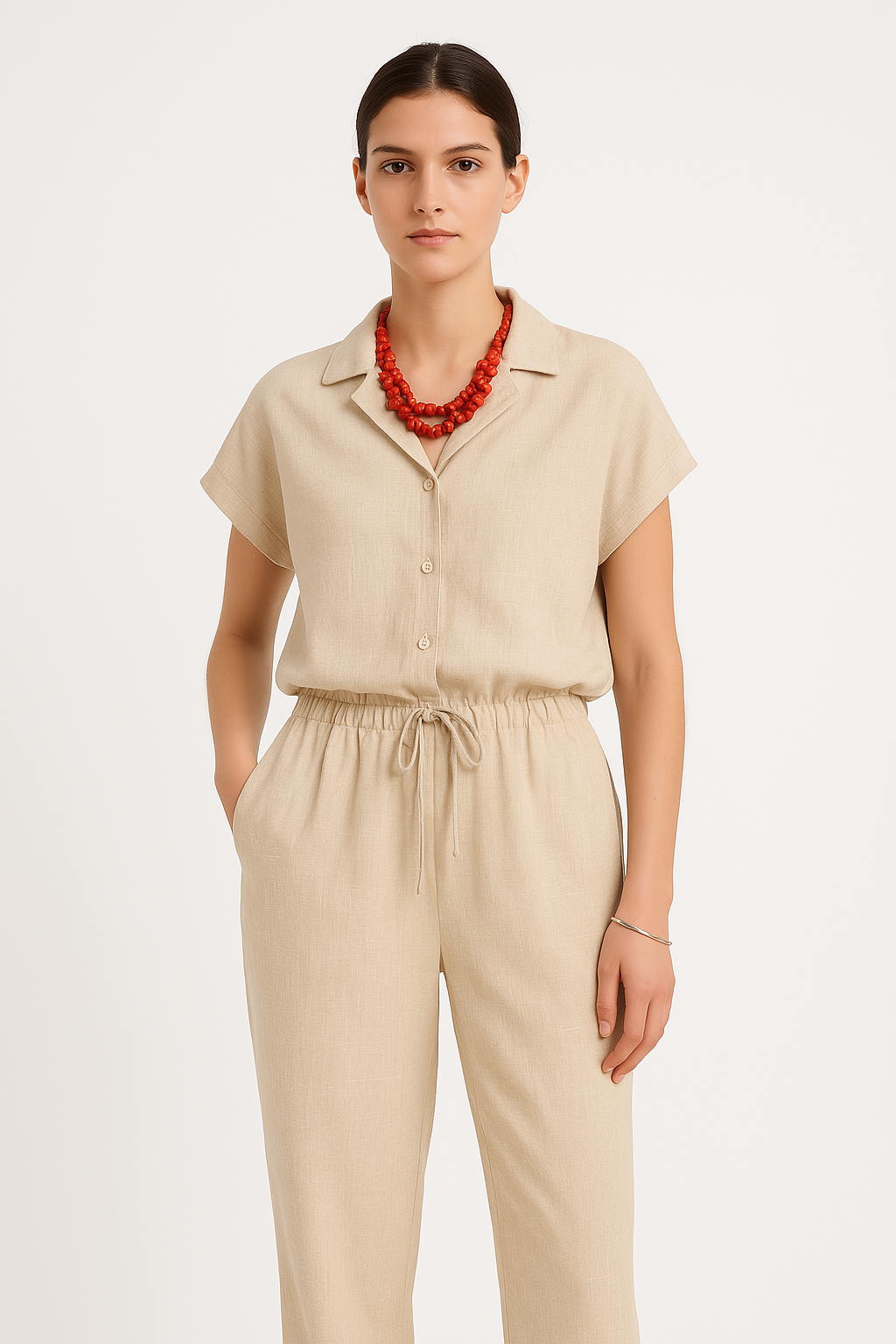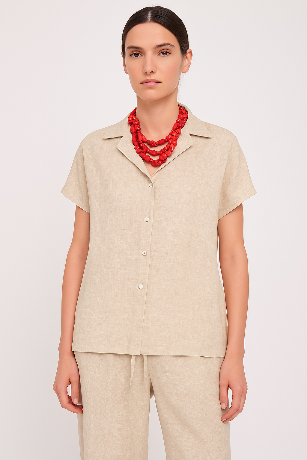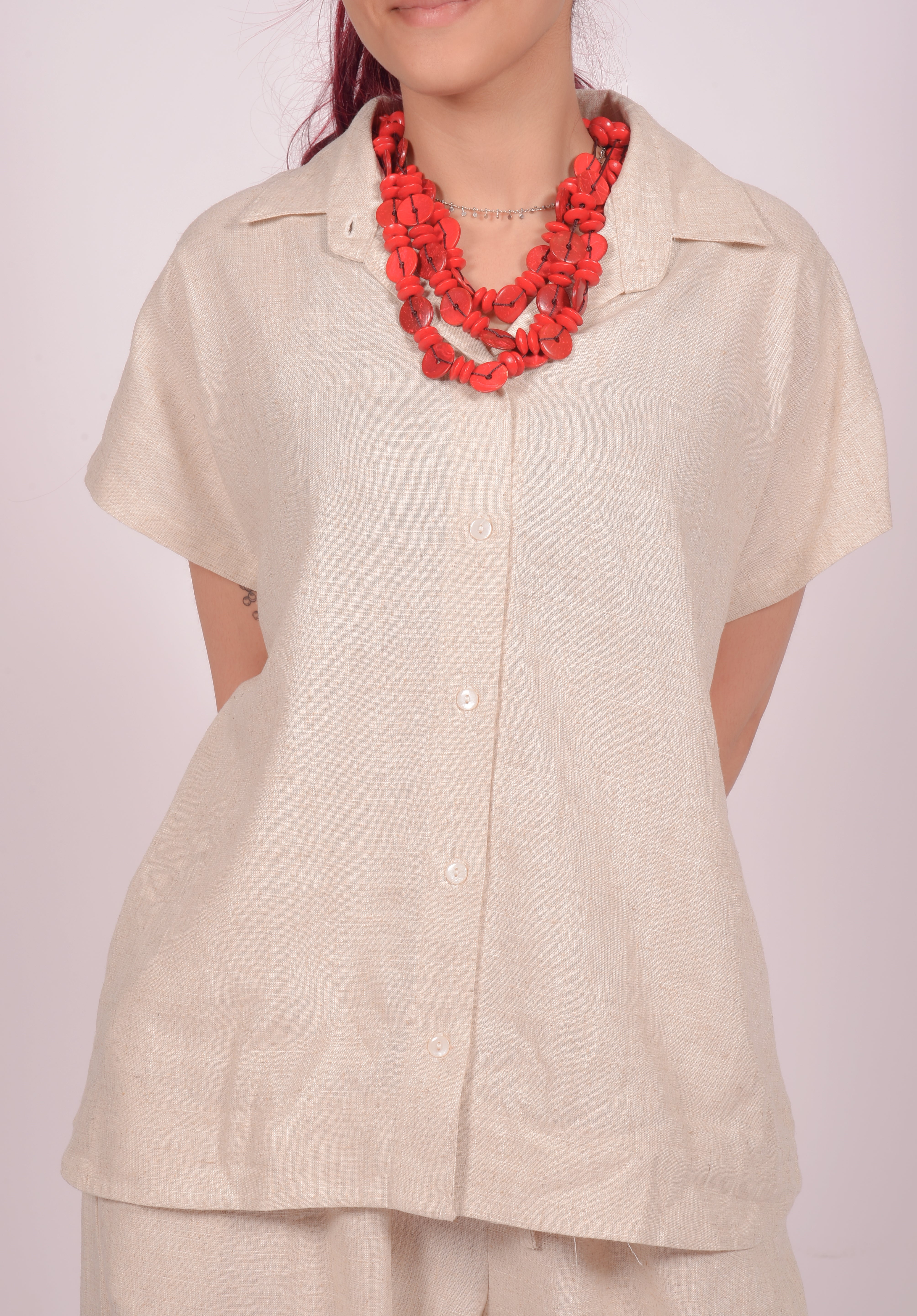 Grounded in neutral minimalism, the Sandstone Calm Co-ord Set is a wardrobe essential. The clean-cut shirt and wide-leg pants make for a relaxed fit, while the understated beige hue keeps it versatile. Style it as a full set or mix and match — it's your canvas for workday layering or weekend lounging.