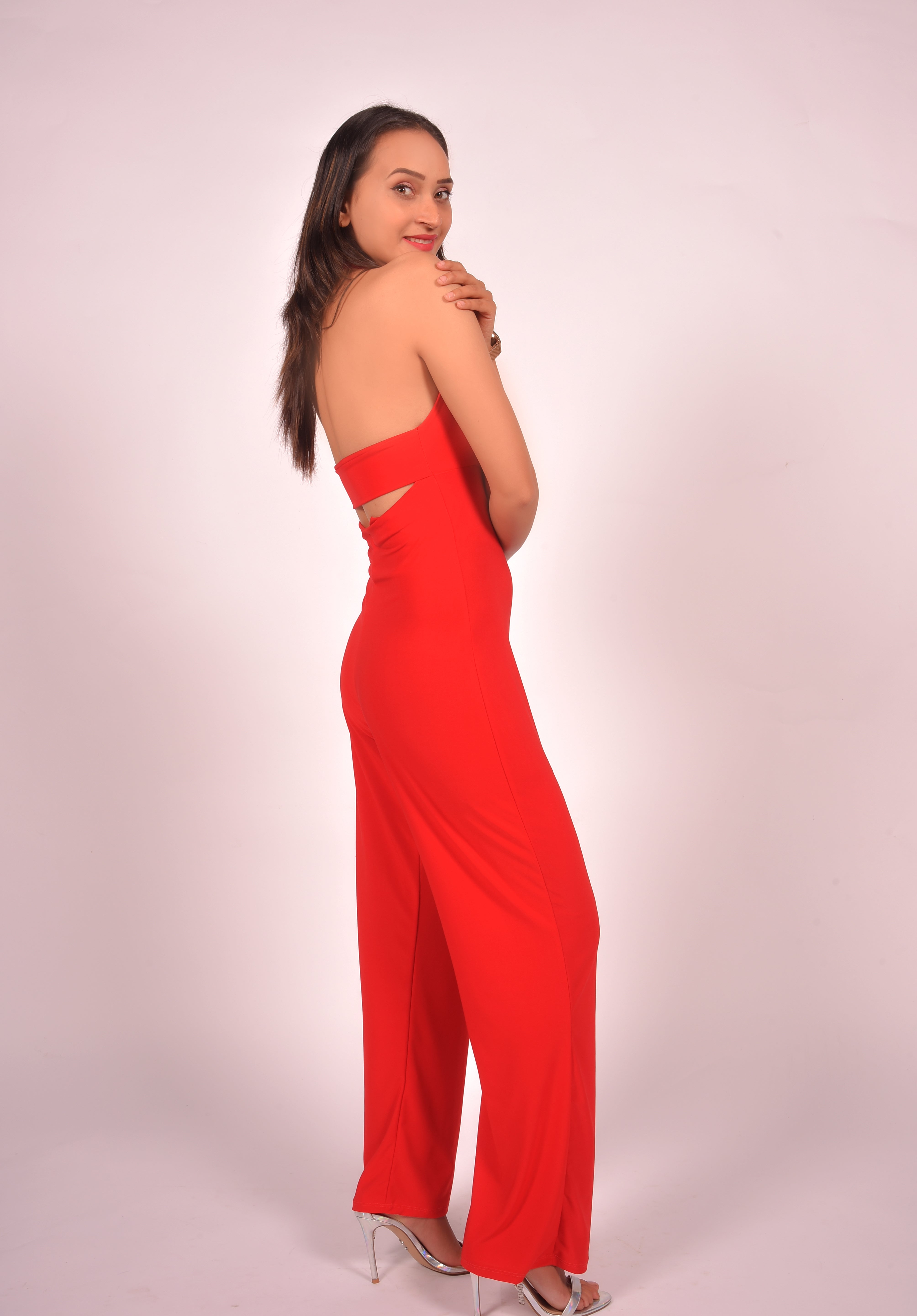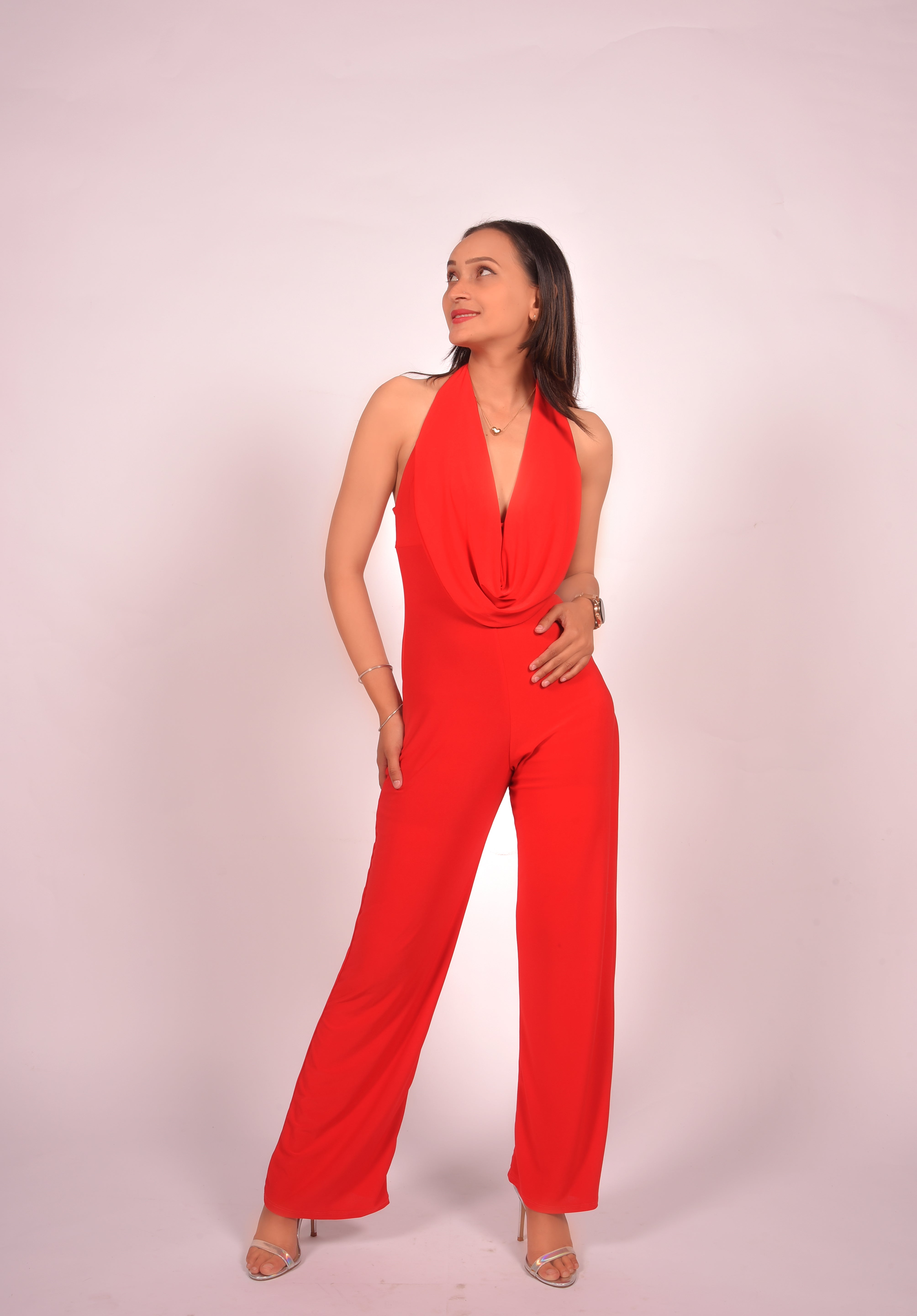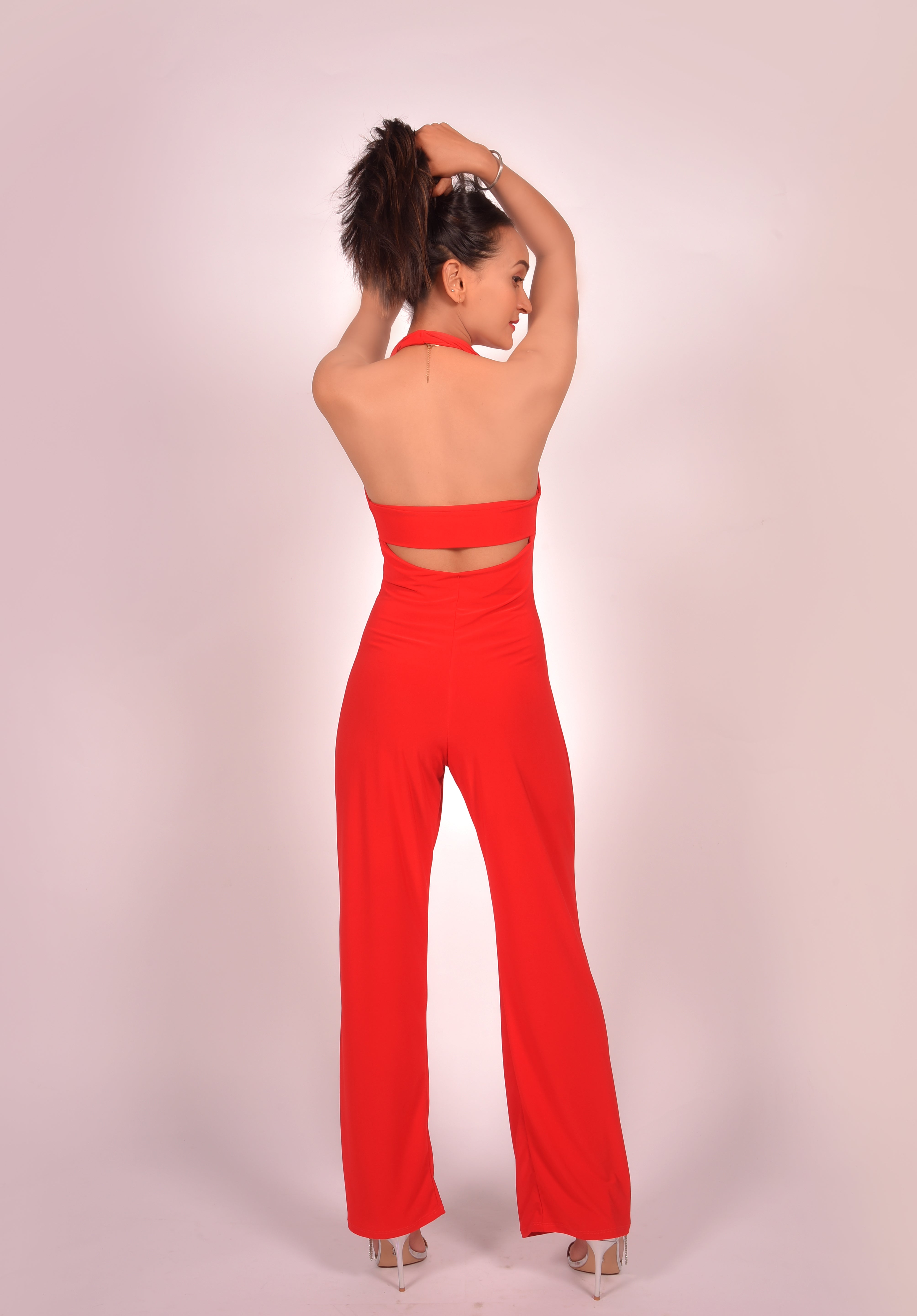 Turn heads with the Celeste Halter Jumpsuit, a perfect blend of elegance and allure. Featuring a deep cowl neckline and a backless design, this jumpsuit exudes sophistication while keeping it effortlessly chic. The soft, flowy fabric drapes beautifully, ensuring comfort and a flattering fit. Ideal for evening parties, date nights, or special occasions, this statement piece is available in Red, Black, White, and Blue to match your mood and style. Pair it with heels and a sleek clutch for a stunning look.