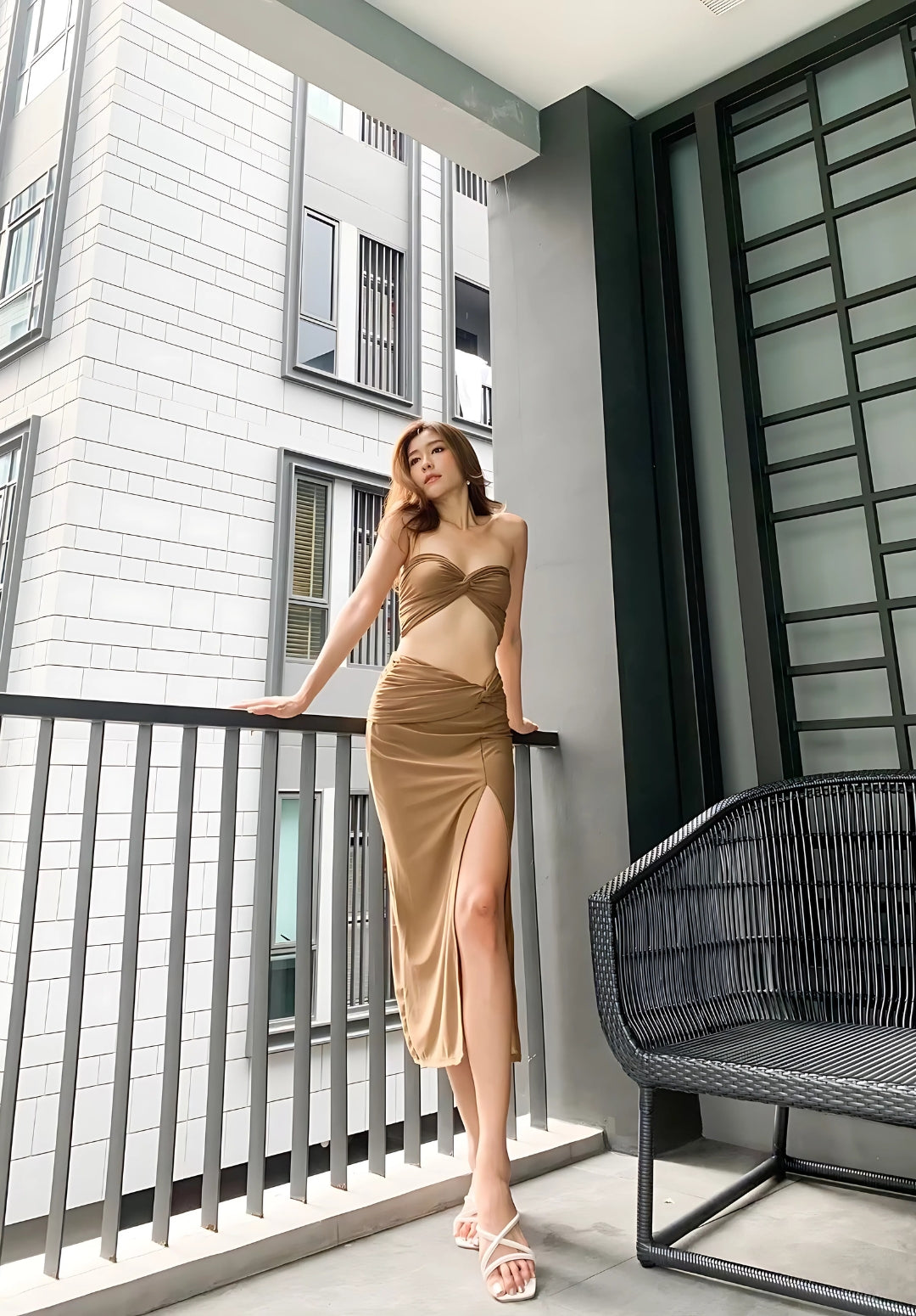 Going on a beach trip? We’ve got the perfect set for your getaway. This effortlessly sexy two-piece includes a twist-knot bandeau top and a matching high-slit ruched skirt, both crafted in soft, stretchable fabric that hugs the body just right. Whether you’re lounging poolside or strolling along the shore, this look brings the heat.
