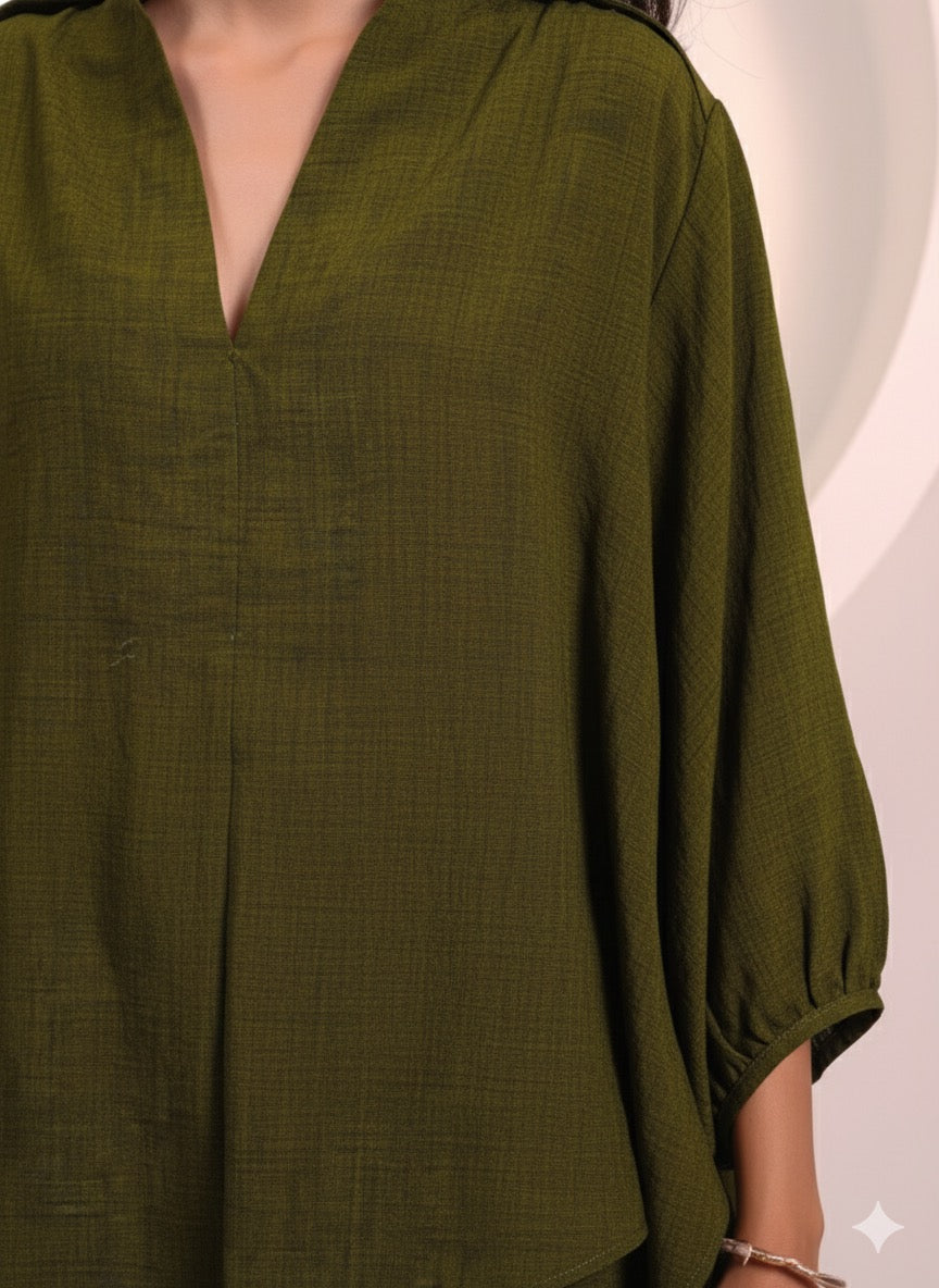Olive Short Flow Collar Top (INCLUDES TOP ONLY)