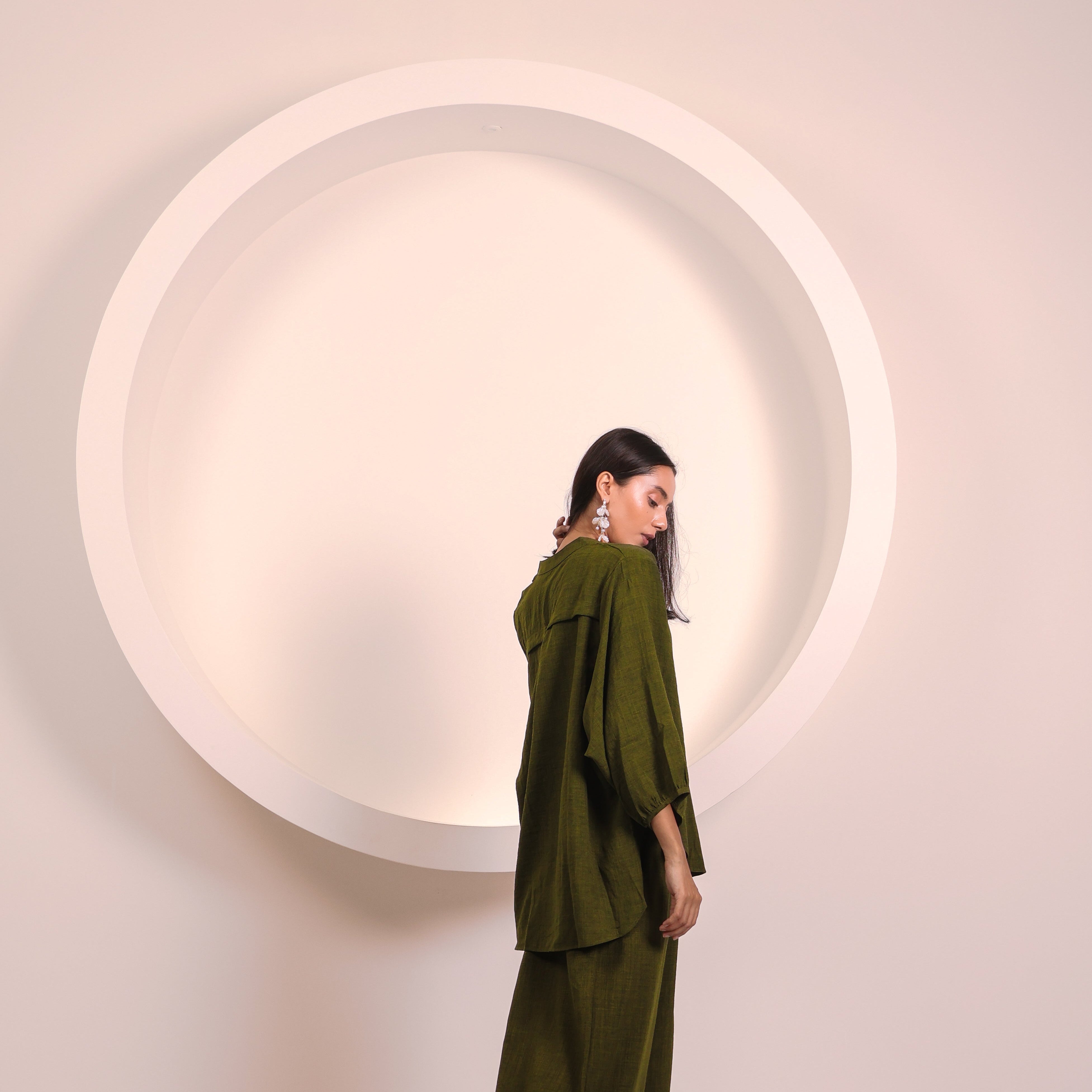 Minimalist and versatile, this relaxed-fit collared top is a timeless wardrobe essential. Designed with 3/4th sleeves and a clean, structured neckline, it offers effortless elegance without compromising on comfort. Its easy length makes it perfect to pair with wide-leg trousers, denims, or skirts, allowing endless styling possibilities.
