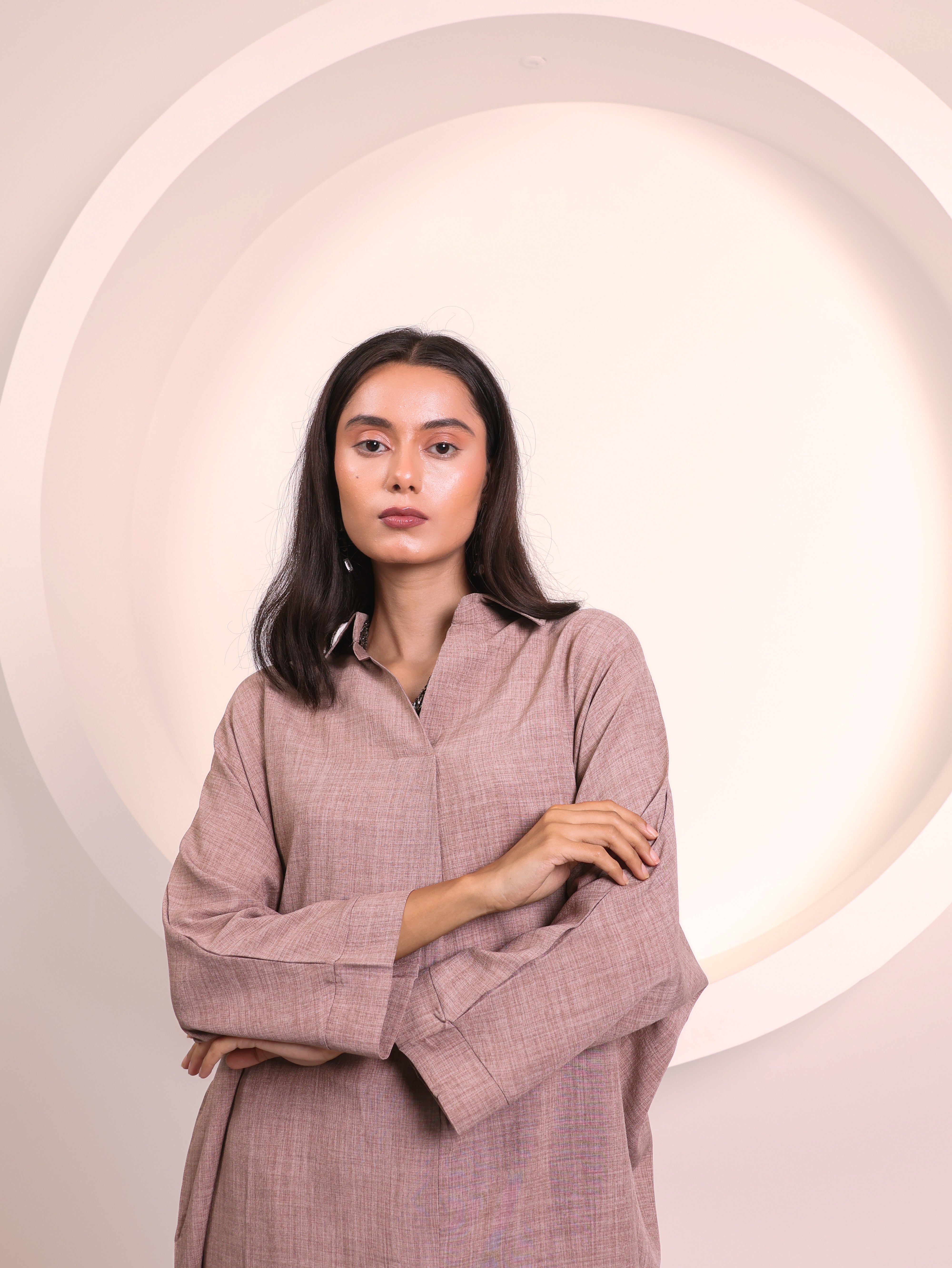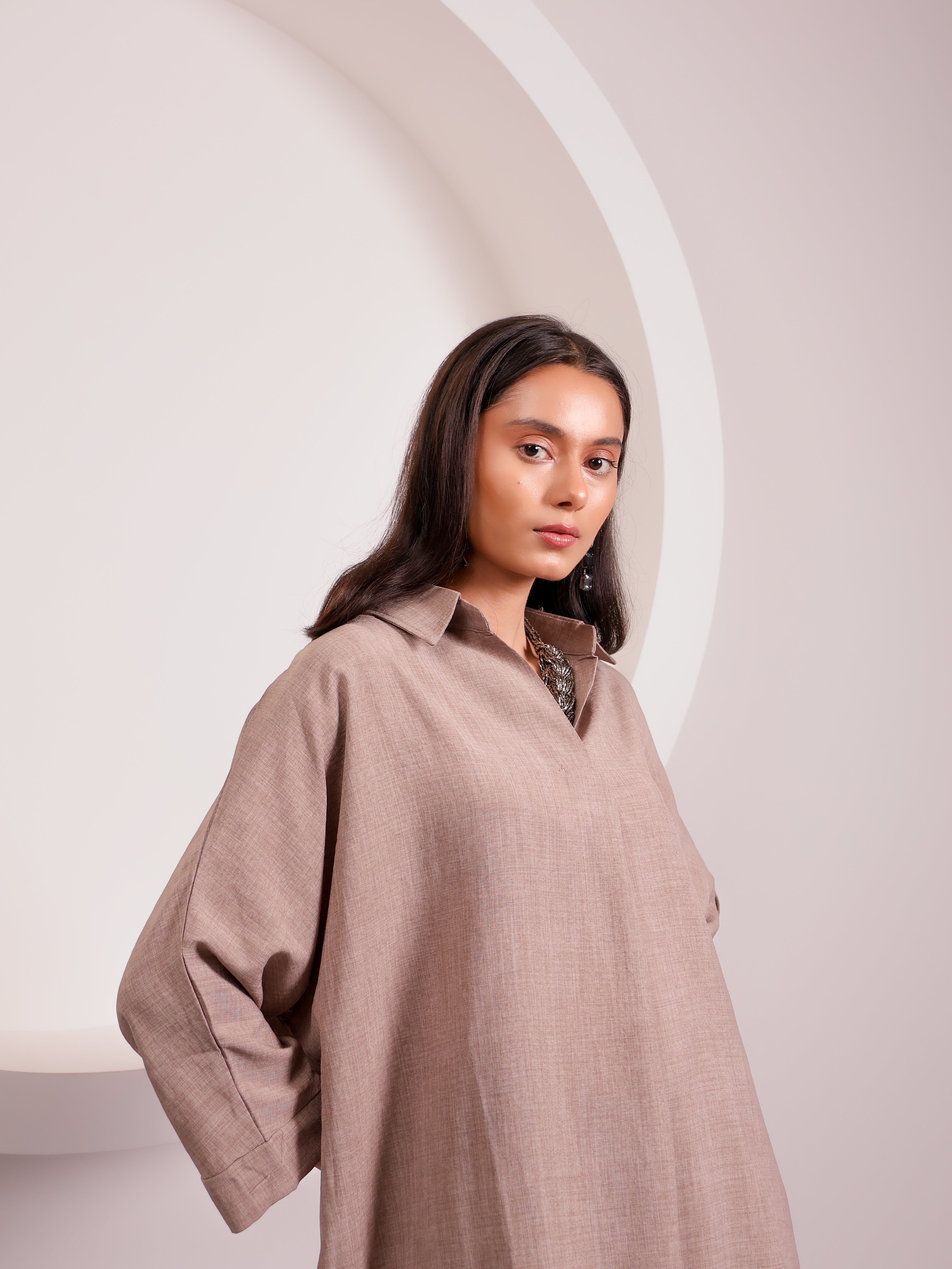 Minimalist and versatile, this relaxed-fit collared top is a timeless wardrobe essential. Designed with 3/4th sleeves and a clean, structured neckline, it offers effortless elegance without compromising on comfort. Its easy length makes it perfect to pair with wide-leg trousers, denims, or skirts, allowing endless styling possibilities.