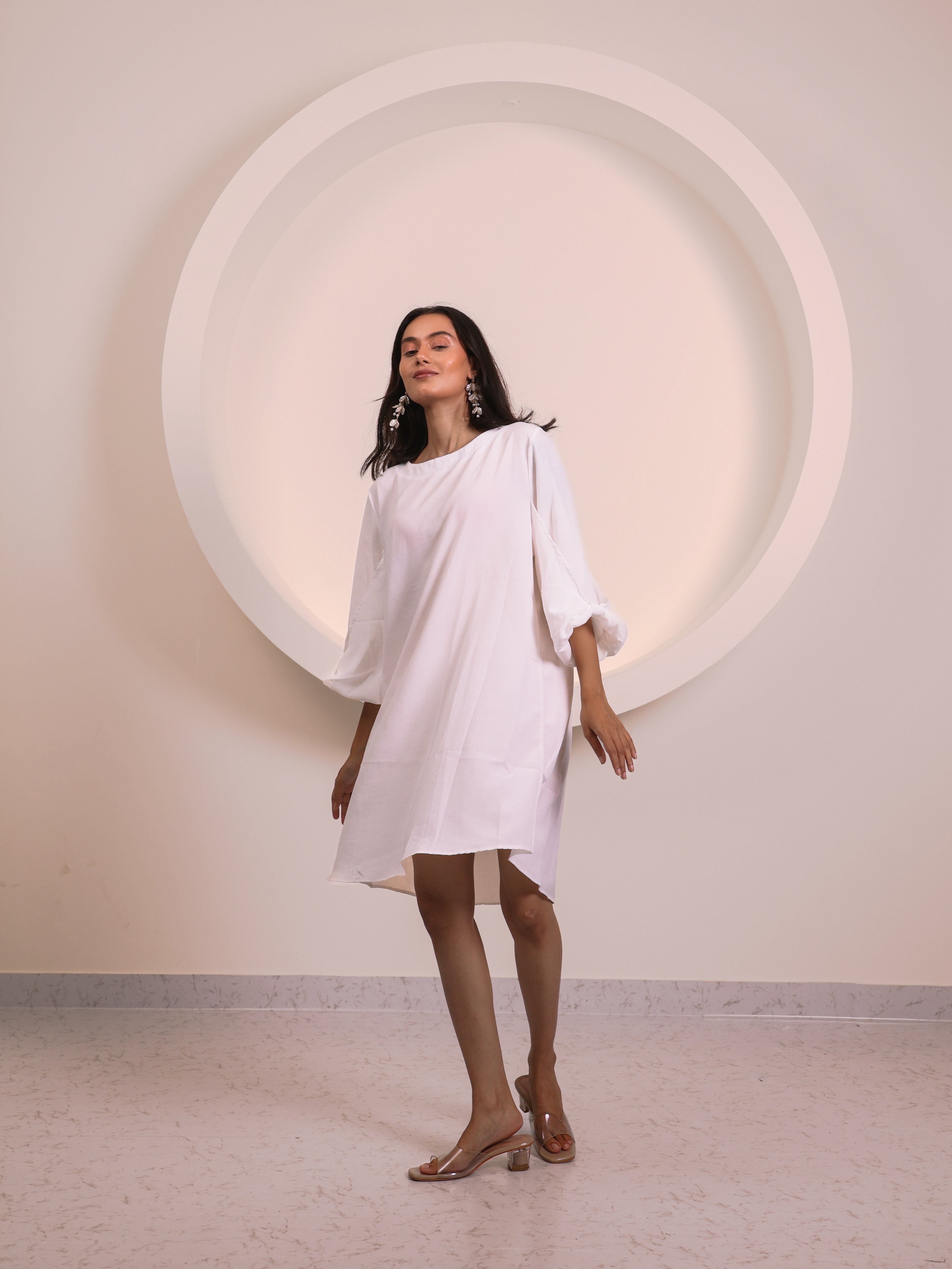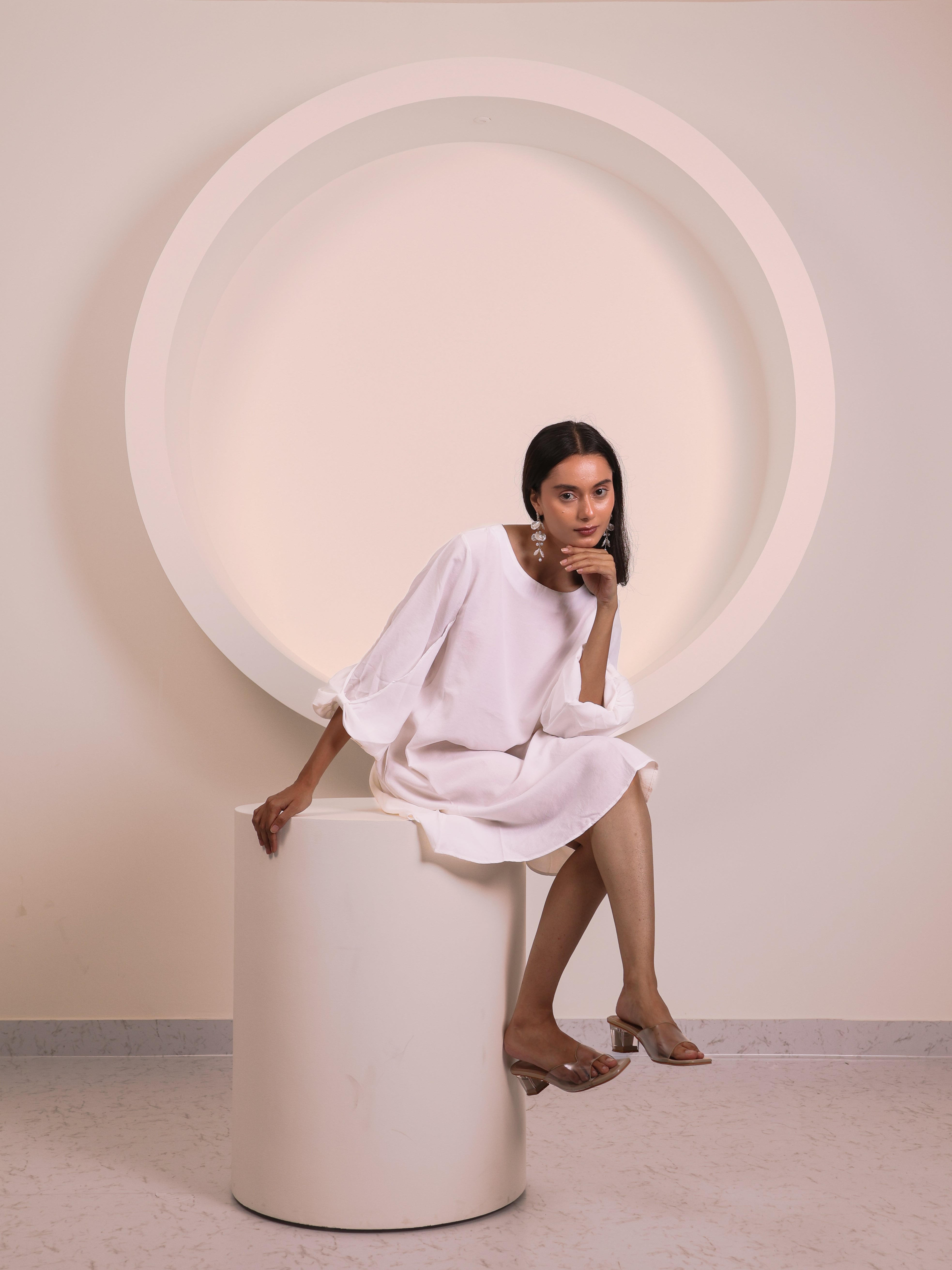 Chic and versatile, this tunic dress is designed for effortless everyday elegance. Featuring a round neckline and 3/4th sleeves with soft fold detailing, it flows into a relaxed A-line silhouette that falls just above the knee. Lightweight and breathable, it offers the perfect balance of comfort and style—whether dressed up with heels and jewelry or worn casually with flats.