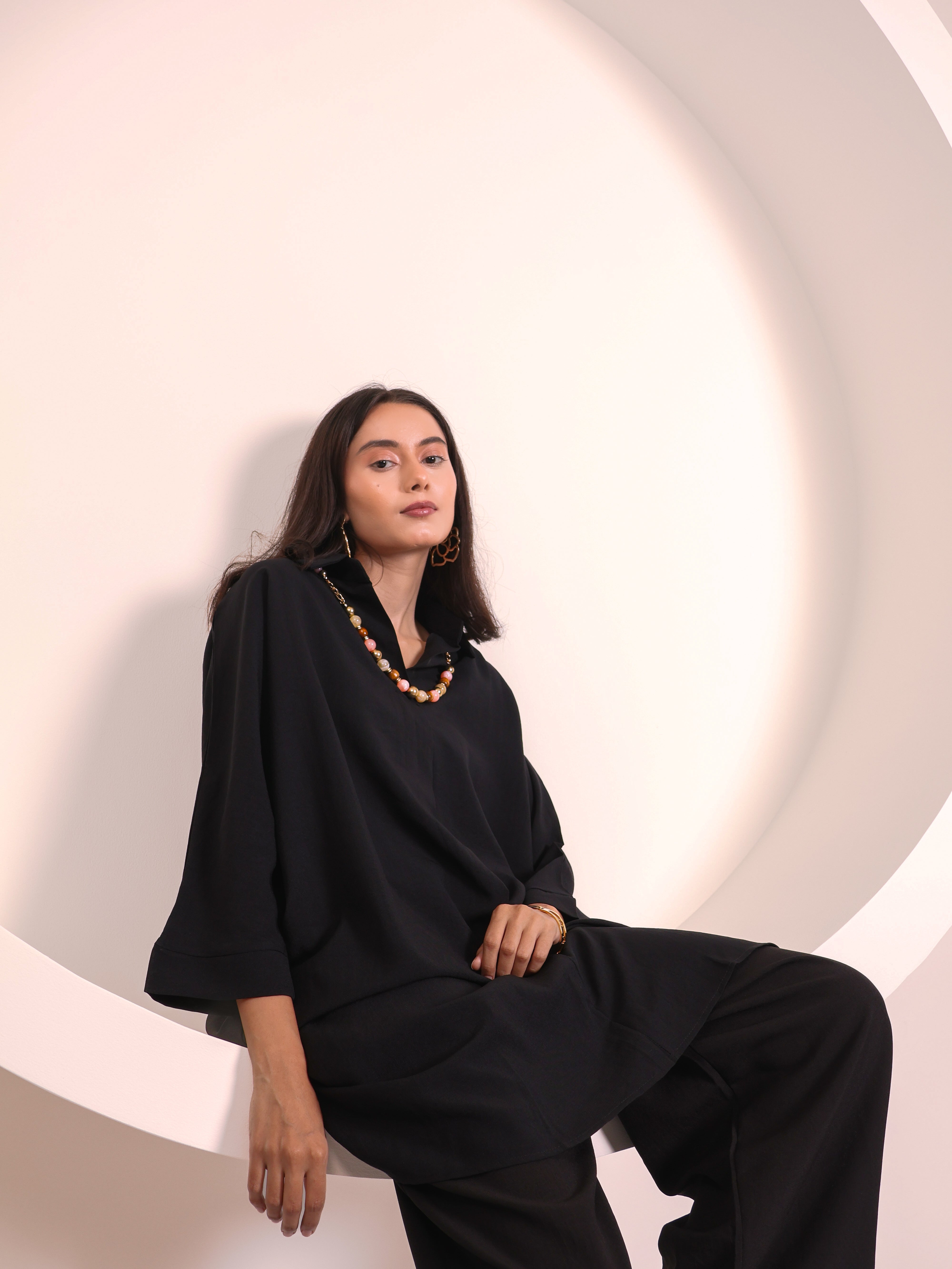 Chic, versatile, and endlessly comfortable—this tunic is crafted to flatter across occasions. The relaxed-fit silhouette features a smart collared neckline and 3/4th sleeves, lending it a breezy yet refined appeal. Designed in lightweight, breathable fabric, it drapes effortlessly and transitions with ease from day to evening. Available in a range of colors—from subtle neutrals to bold statement tones—each shade tells its own style story. Pair it with trousers, denim, or leggings to create looks that go from casual chic to polished elegance.