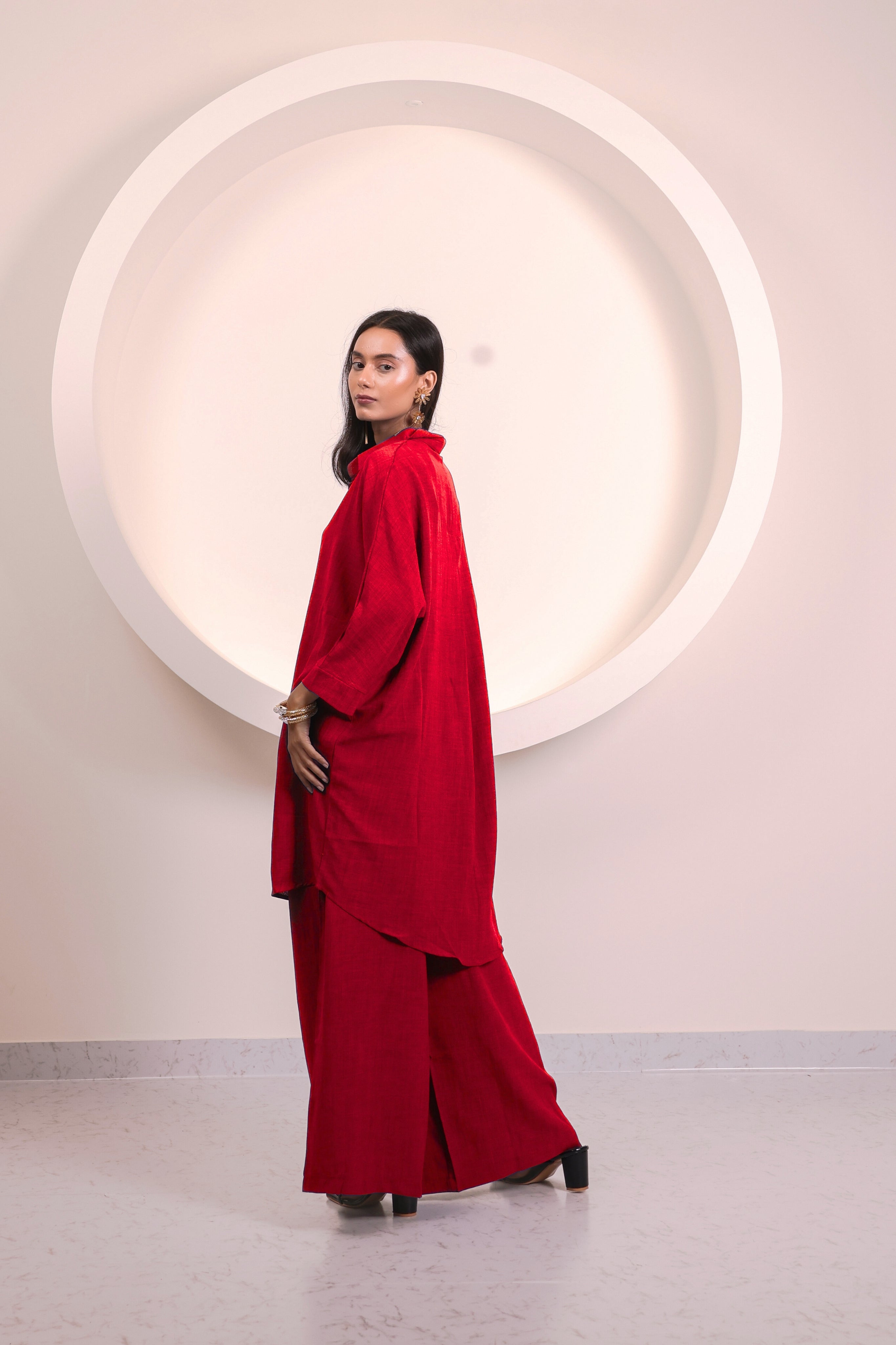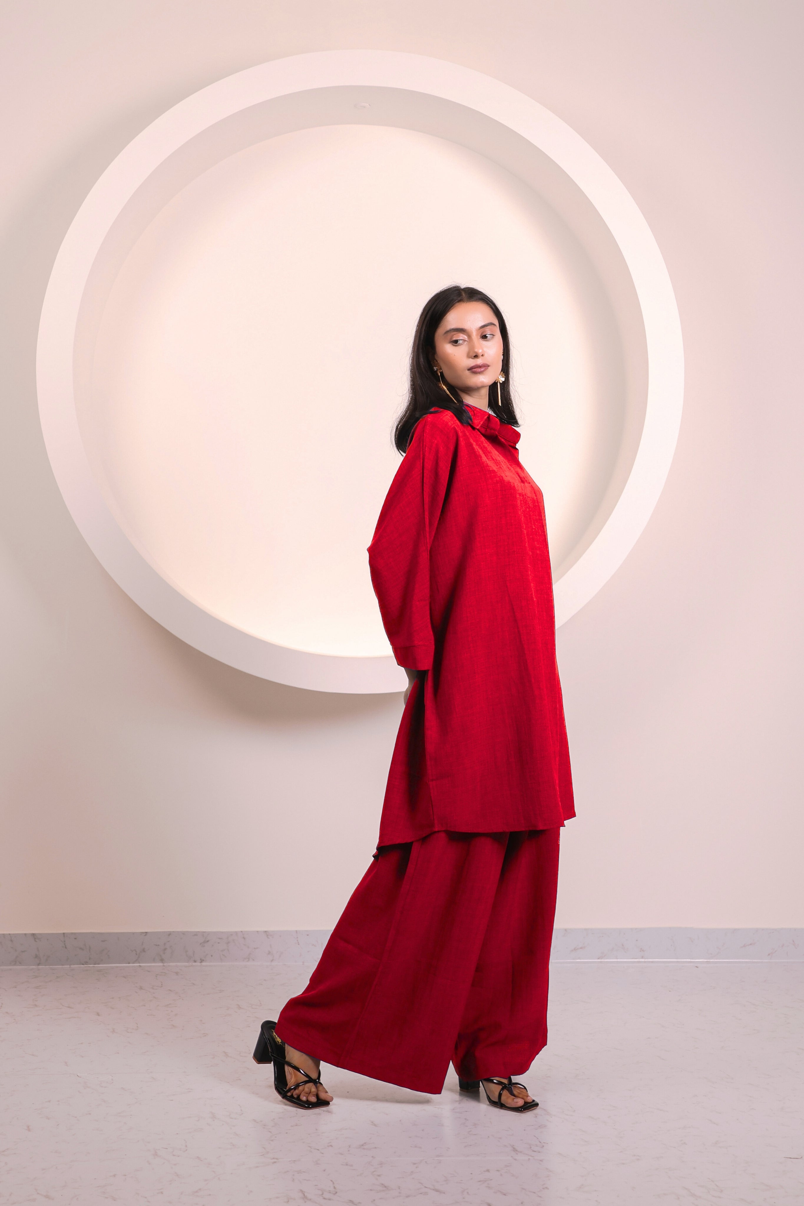 Red collar long tunic top (INCLUDES TUNIC ONLY)
