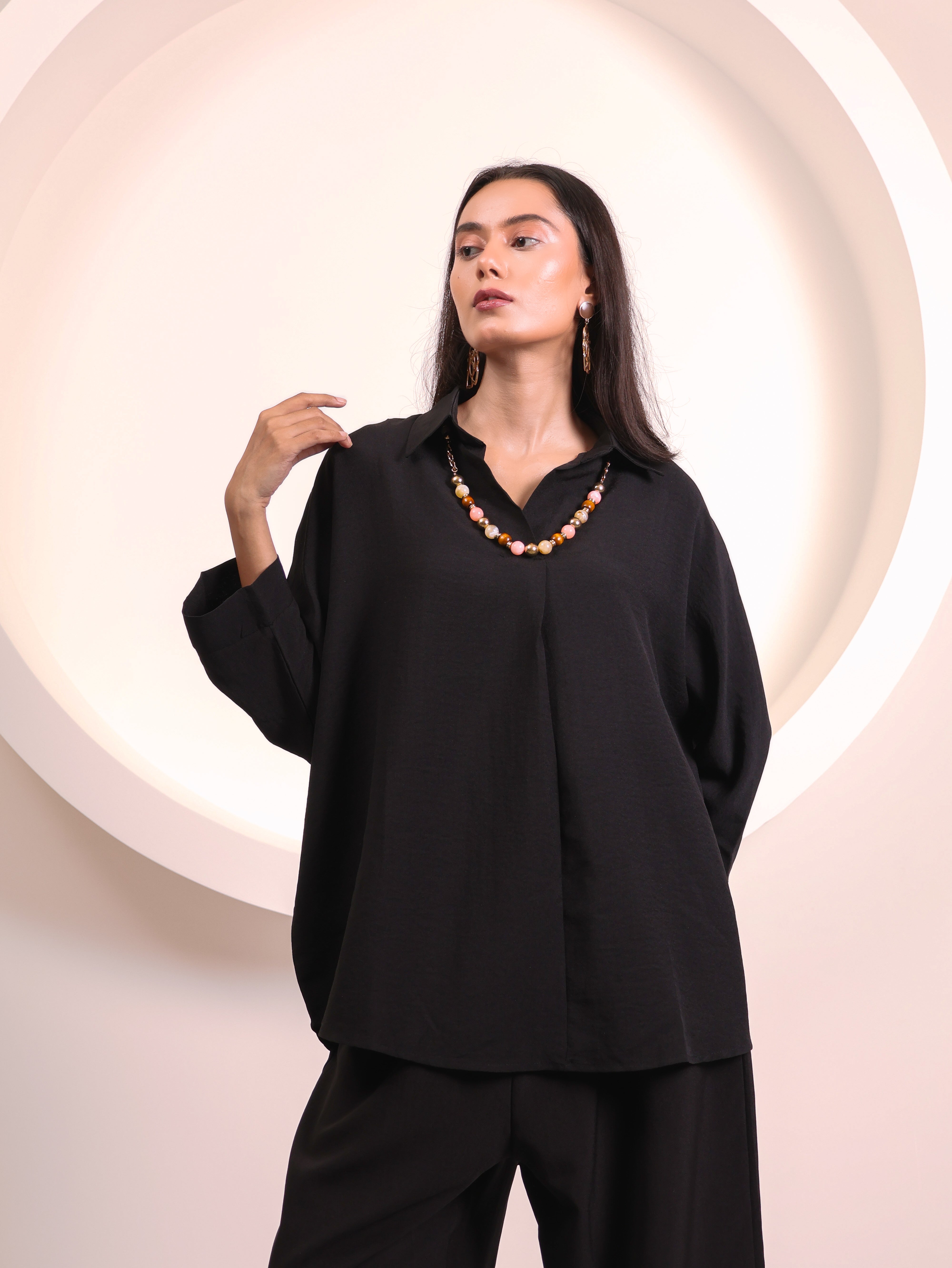 Black Short Flow Collar Top (INCLUDES TOP ONLY)