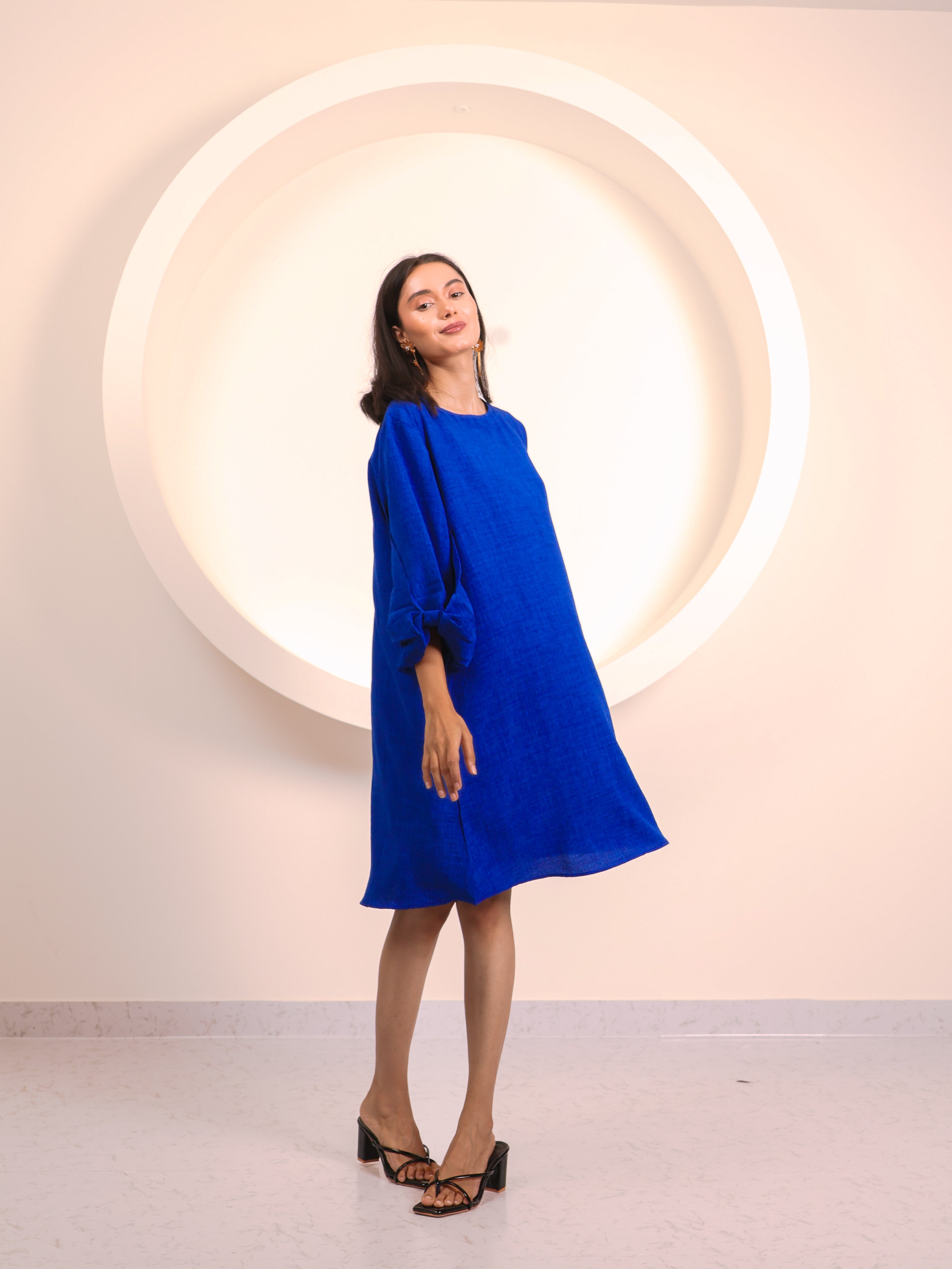 Chic and versatile, this tunic dress is designed for effortless everyday elegance. Featuring a round neckline and 3/4th sleeves with soft fold detailing, it flows into a relaxed A-line silhouette that falls just above the knee. Lightweight and breathable, it offers the perfect balance of comfort and style—whether dressed up with heels and jewelry or worn casually with flats.