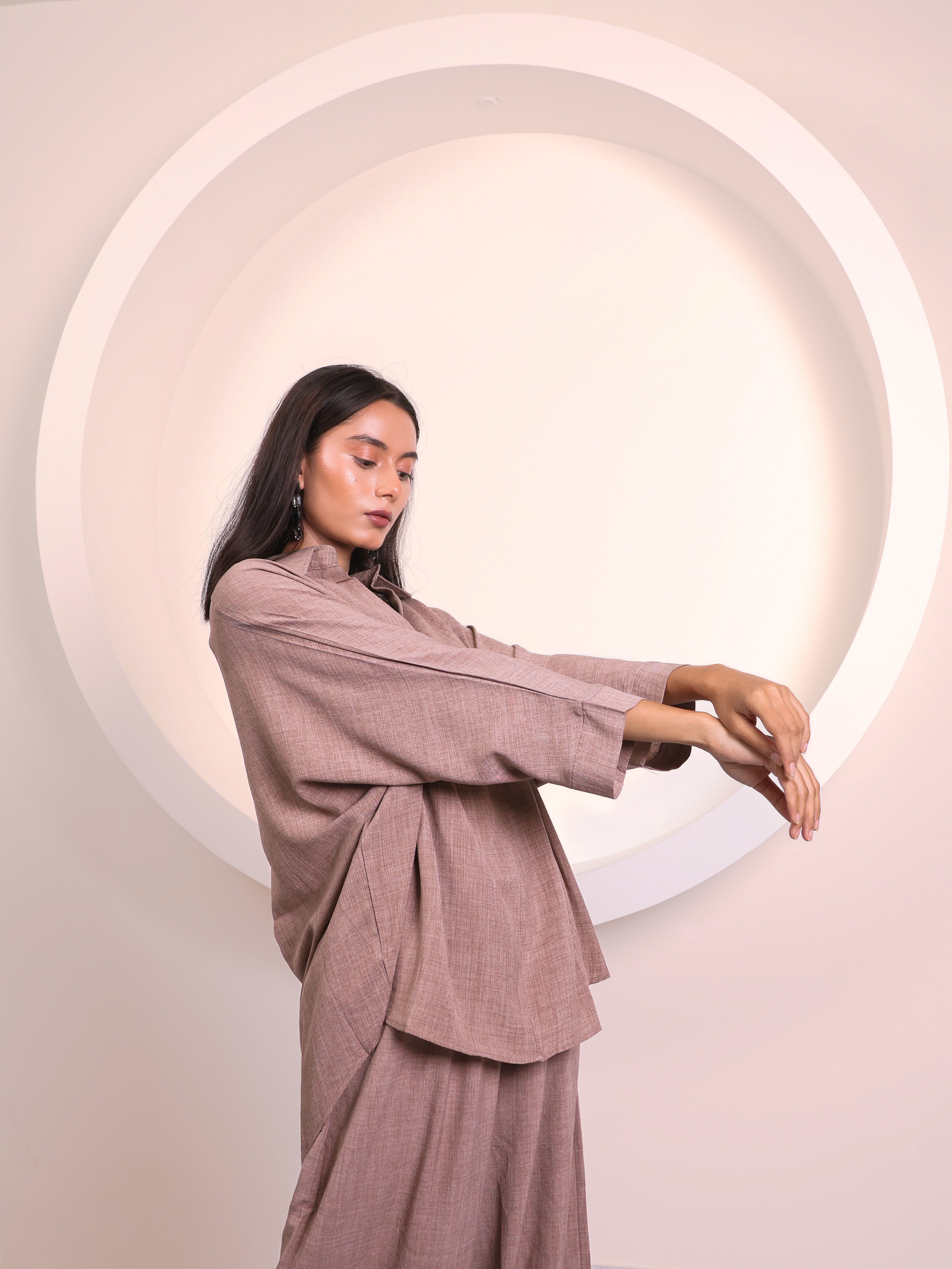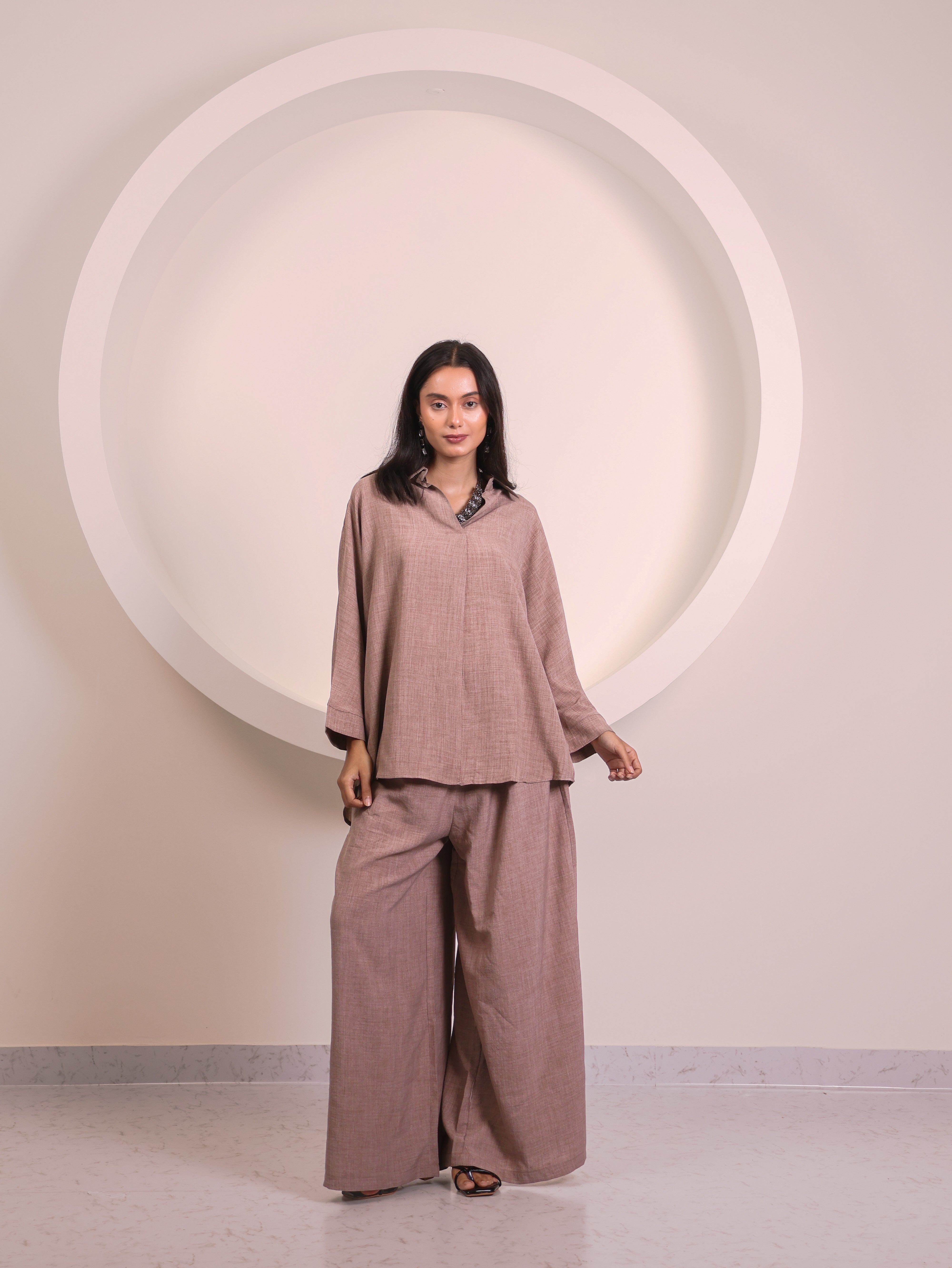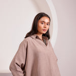 Minimalist and versatile, this relaxed-fit collared top is a timeless wardrobe essential. Designed with 3/4th sleeves and a clean, structured neckline, it offers effortless elegance without compromising on comfort. Its easy length makes it perfect to pair with wide-leg trousers, denims, or skirts, allowing endless styling possibilities.