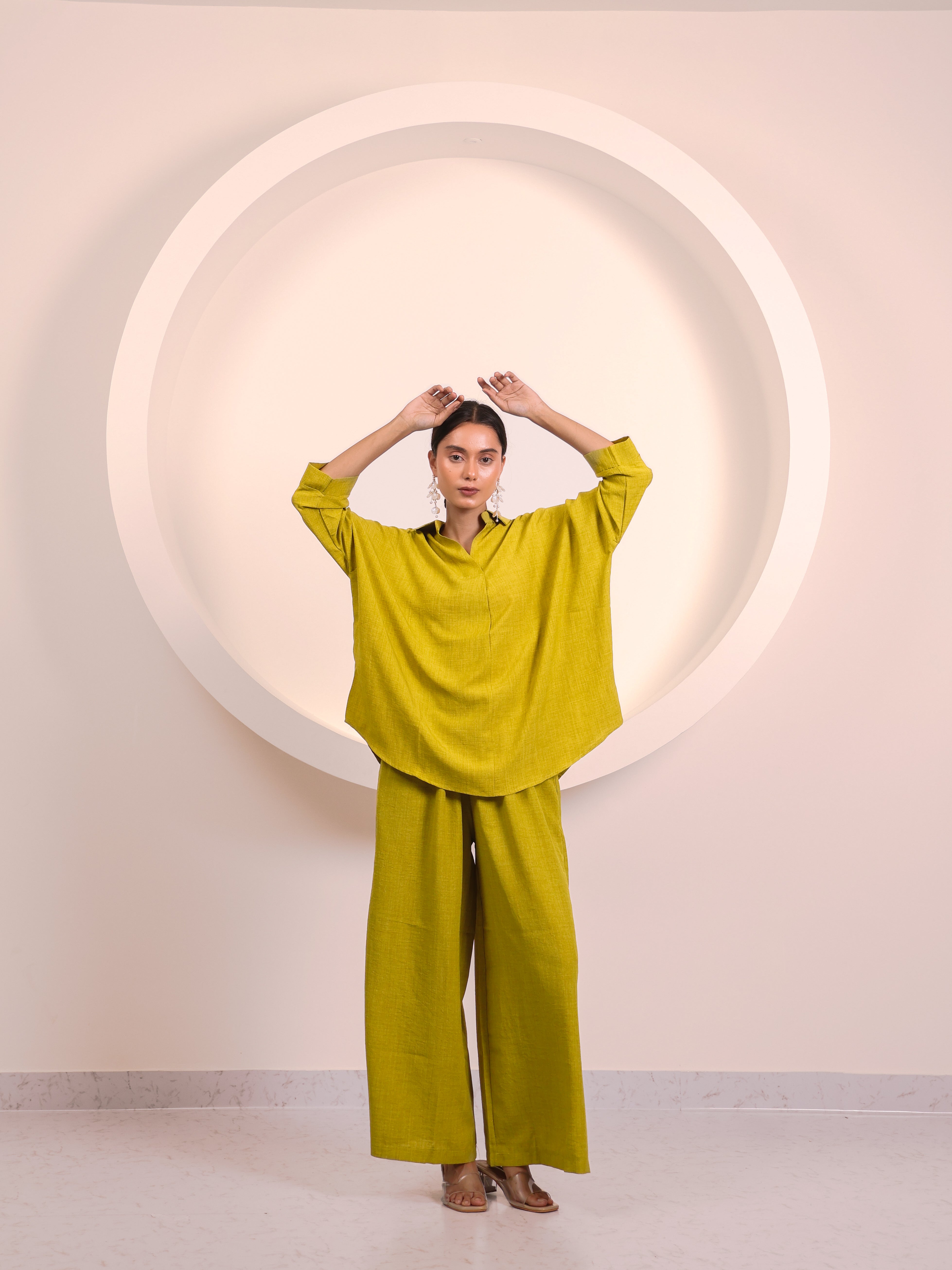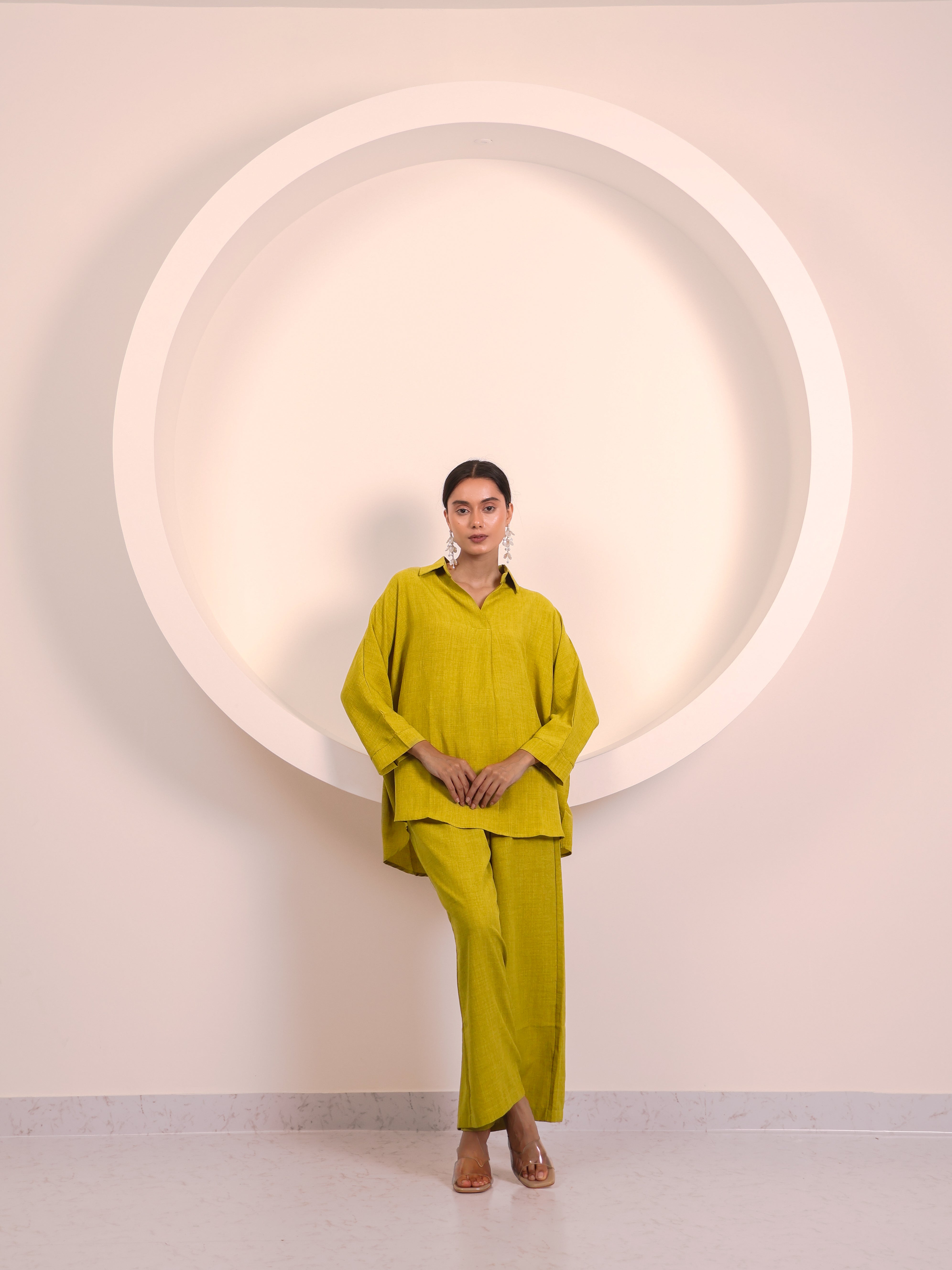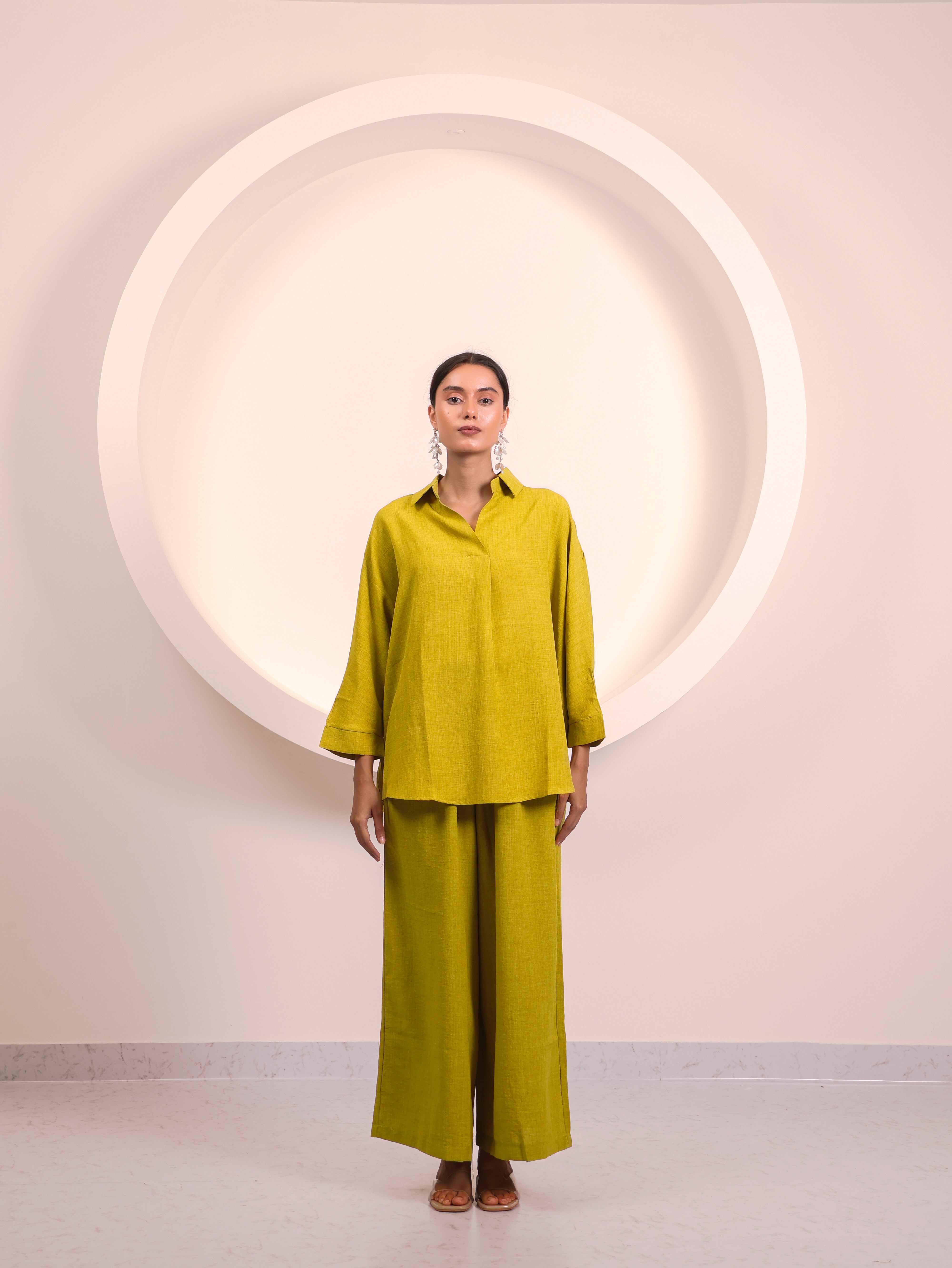 Minimalist and versatile, this relaxed-fit collared top is a timeless wardrobe essential. Designed with 3/4th sleeves and a clean, structured neckline, it offers effortless elegance without compromising on comfort. Its easy length makes it perfect to pair with wide-leg trousers, denims, or skirts, allowing endless styling possibilities.