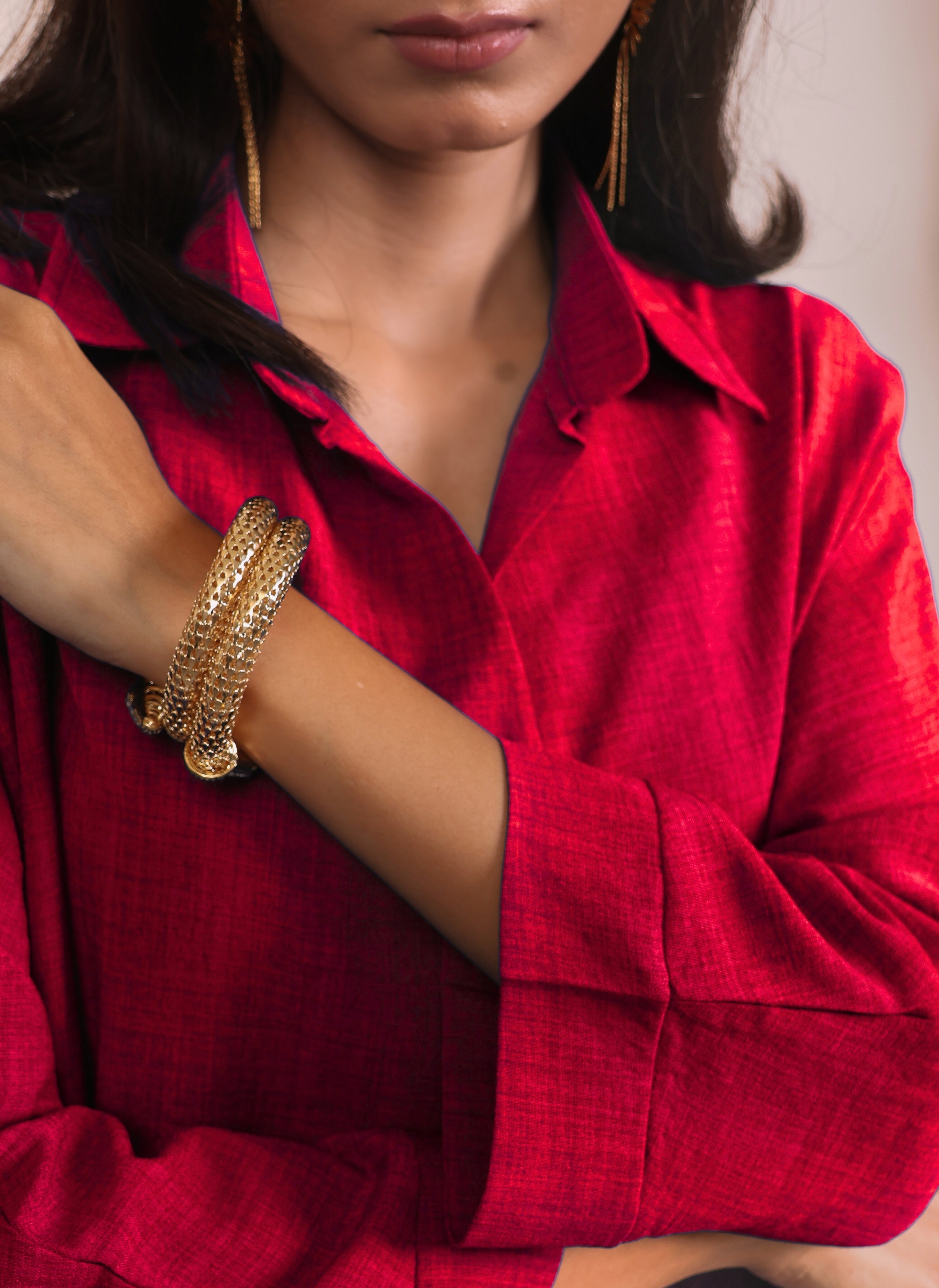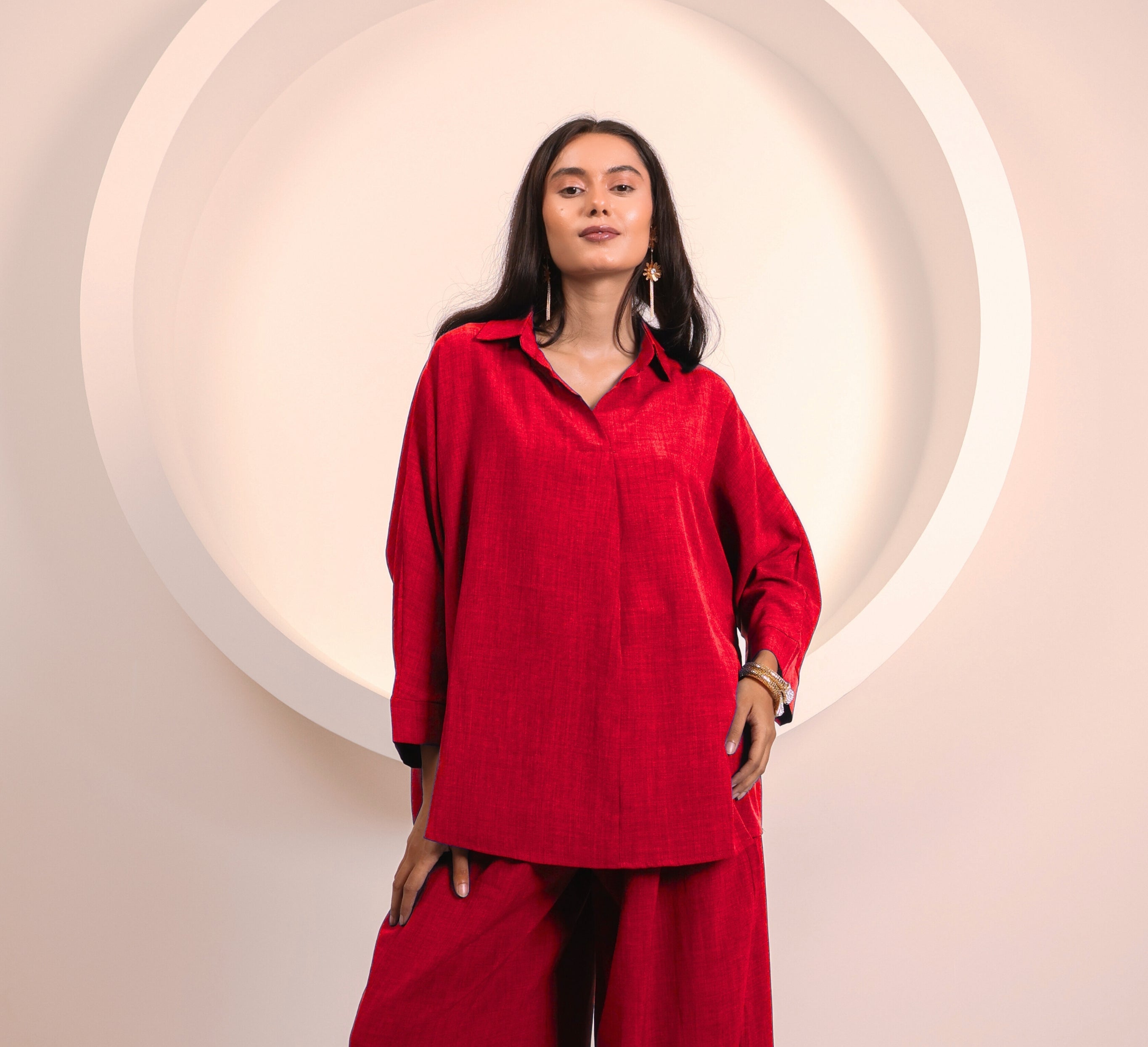 Minimalist and versatile, this relaxed-fit collared top is a timeless wardrobe essential. Designed with 3/4th sleeves and a clean, structured neckline, it offers effortless elegance without compromising on comfort. Its easy length makes it perfect to pair with wide-leg trousers, denims, or skirts, allowing endless styling possibilities.