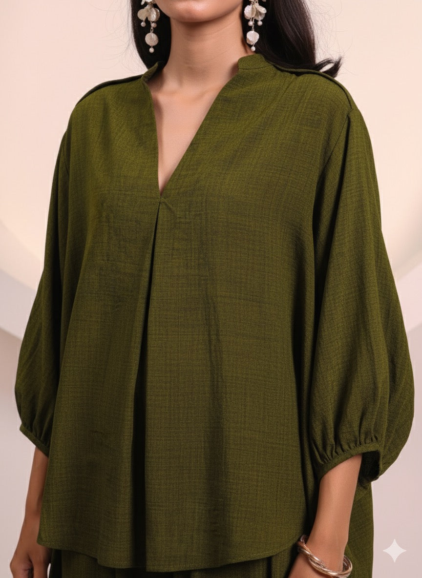 Olive Short Flow Collar Top (INCLUDES TOP ONLY)