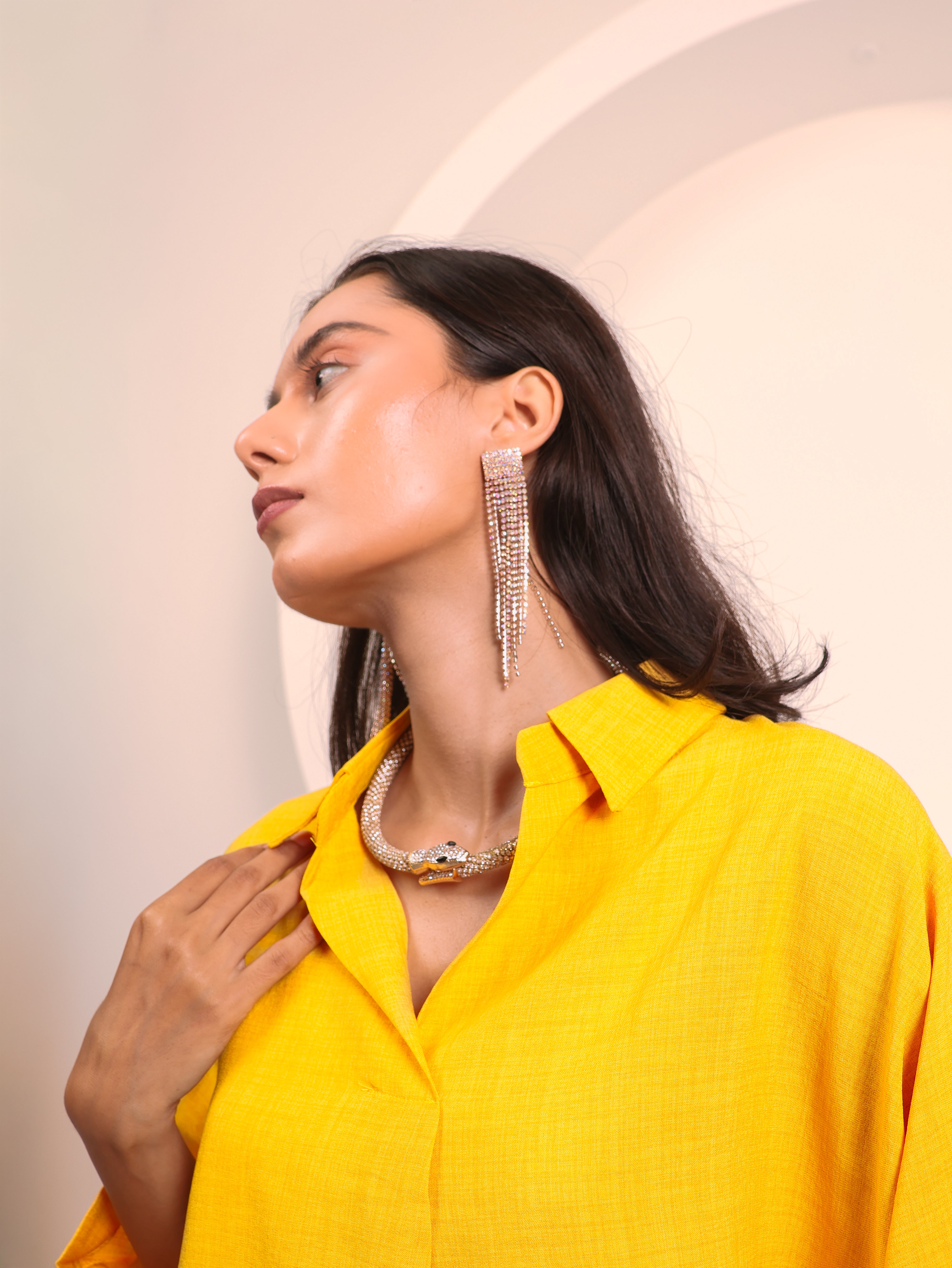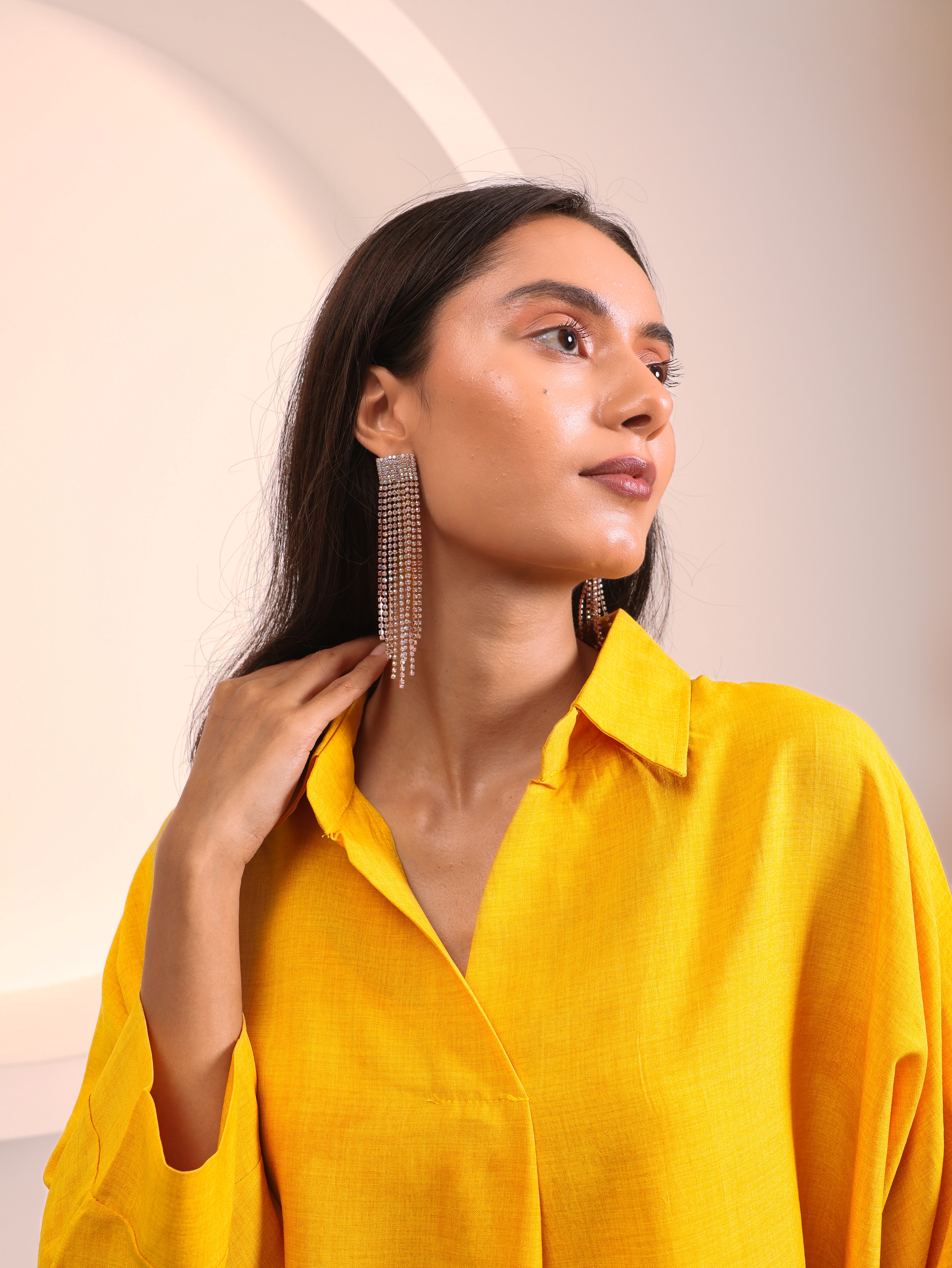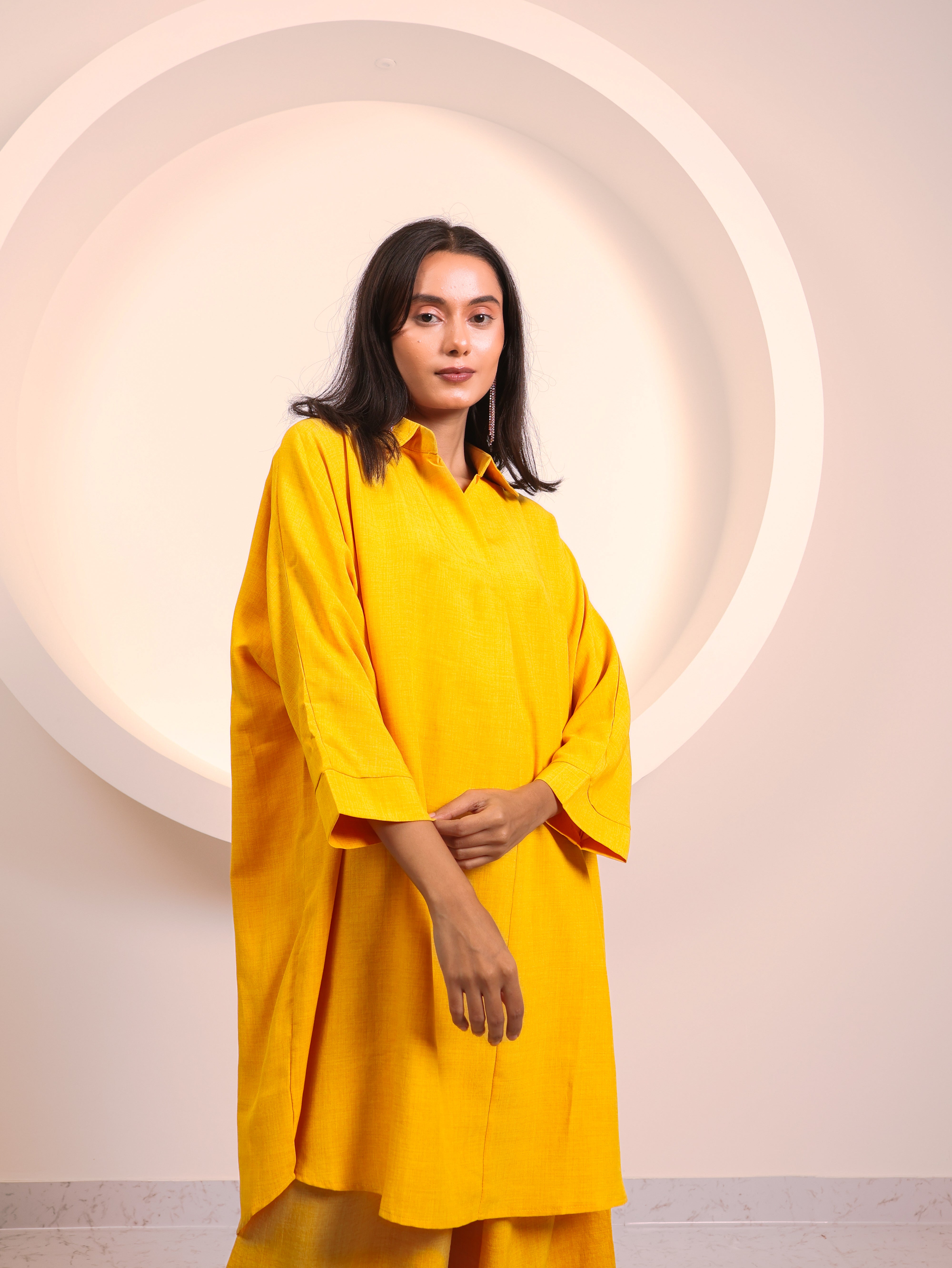 Chic, versatile, and endlessly comfortable—this tunic is crafted to flatter across occasions. The relaxed-fit silhouette features a smart collared neckline and 3/4th sleeves, lending it a breezy yet refined appeal. Designed in lightweight, breathable fabric, it drapes effortlessly and transitions with ease from day to evening. Available in a range of colors—from subtle neutrals to bold statement tones—each shade tells its own style story. Pair it with trousers, denim, or leggings to create looks that go from casual chic to polished elegance.